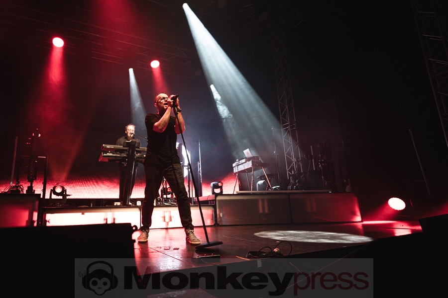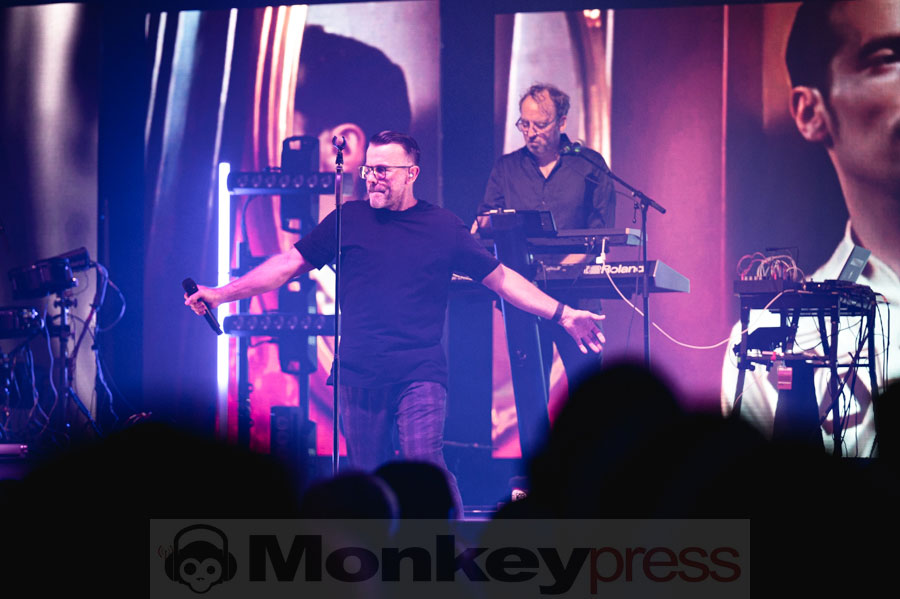 Der Klassiker That Smiling Face, der 1988 in den USA als Single veröffentlicht wurde, erstrahlte in einem frischen, pfiffigen Arrangement, und Frontmann Marcus hatte keinerlei Mühe, die Menge zum Mitklatschen zu animieren. Anschließend schwelgte der charismatische Sänger in Erinnerungen an das 41-jährige Bandjubiläum und die Gruppe präsentierte einen Song aus ihren Anfangstagen: Fade In Memory. Dieser hätte sich mit seiner minimalistischen Naivität ebenso gut auf Depeche Modes Album Speak And Spell eingefügt. Bei You Turn tauchte dann das schmerzlich vermisste Bandmitglied Oliver Kreyssig auf der LED-Leinwand auf und übernahm die Lead Vocals aus dem Off. Mit dem Kracher Me And You ging es dann richtig zur Sache – das Lied wurde mit einer weiteren Hommage an Depeche Mode, inklusive Armbewegungen und einer Synthielinie à la Never Let Me Down Again, verziert.