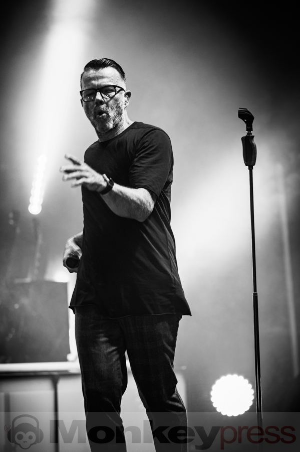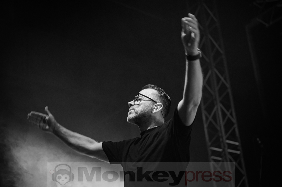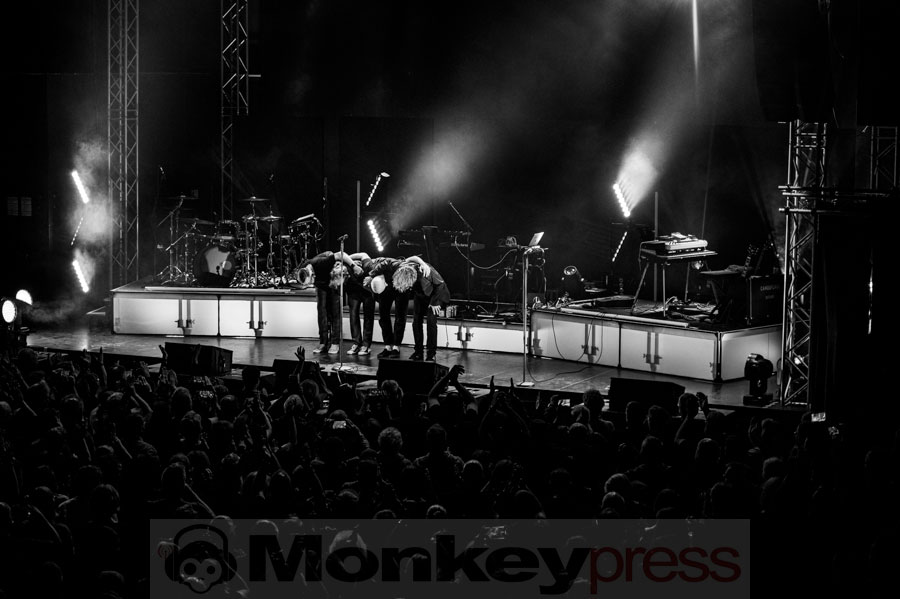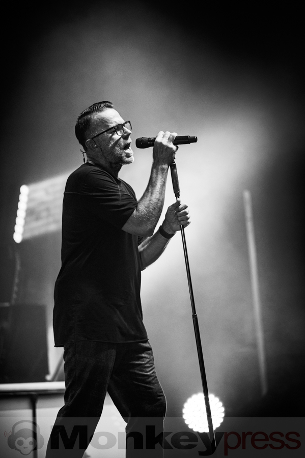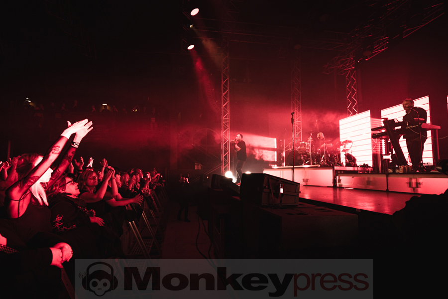 Ein besonderes Schmankerl war das mitreißende Medley aus We Are Lovers und Blue Monday, bei dem Volker den ikonischen „Hookie“-Bass des Synthiepop-Klassikers gekonnt intonierte. Die Musiker hatten sichtlich Spaß an ihrer Performance, und das Publikum wurde mitgerissen. Der charmante Marcus erzählte den Zuschauern eine amüsante Anekdote über die defekte LED-Leinwand und wie die Techniker der Tour den Konzertabend gerettet hatten. In seiner gewohnt gesprächigen Art übte der Frontmann mit den Fans die Kopfstimme des Songs Leave Your Room Behind, die diese perfekt umsetzten. Auch bei den ersten Klängen von Shine stimmte das Publikum begeistert ein und die „Oohhh“-Chöre erzeugten eine Gänsehaut-Atmosphäre in der Turbinenhalle. Der letzte Track des ersten Blocks war die genialste Version von The Great Commandment, die das Publikum je gehört hatte – einfach großes Kino!