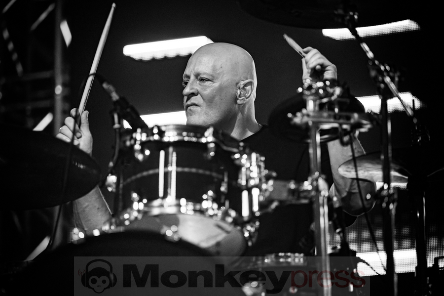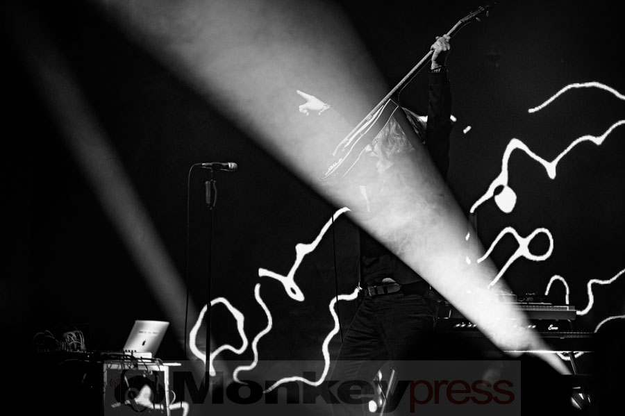 Ein weiteres Highlight war das kraftvolle Arrangement von Suspicious Love, das zunächst im Halbtakt groovte, bevor ein abruptes Tempowechsel das Publikum in Bewegung versetzte und alle Zuschauer in der Turbinenhalle zum Tanzen und in Ekstase brachte. Der Song Perfect kam dann ruhiger und besonnener daher, bevor er sich in rockigere, fast psychedelische Sphären entwickelte. Oli war erneut auf der Leinwand zu sehen, während Jochens Livedrums und Volkers Gitarre in perfekter Symbiose mit den elektronischen Klängen verschmolzen. Auch der neue Song Everything fügte sich nahtlos in den Backkatalog der Band ein.