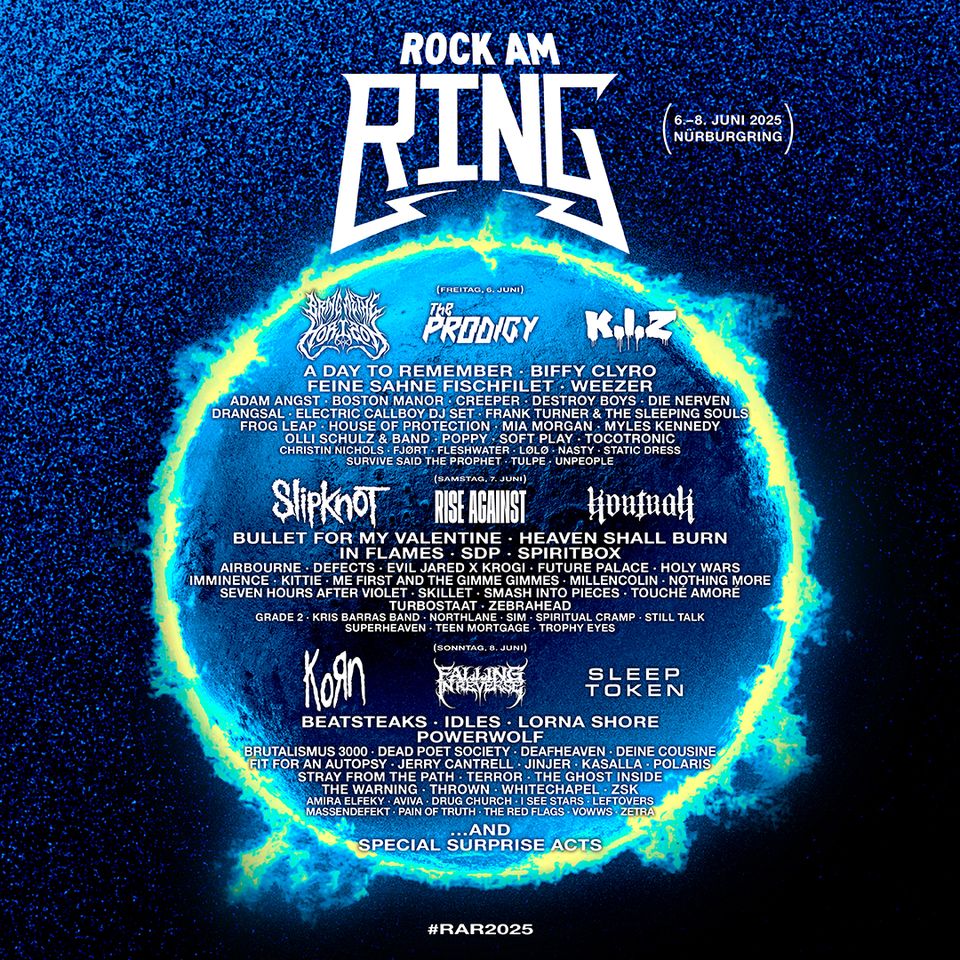 The Prodigy, K.I.Z, Kontra K, Rise Against, A Day To Remember, Sleep Token, Bullet For My Valentine, Heaven Shall Burn, Spiritbox, Beatsteaks, Idles und viele, viele mehr werden die Festival-Crowd zum Beben bringen! Seit 40 Jahren ist Rock am Ring mehr als ein Festival – es ist ein Lebensgefühl! Hier treffen sich alte und neue Freunde, hier werden Erinnerungen geschaffen, die für immer bleiben.