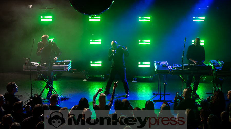 Die meisten im dicht gestaffelten Publikum dürften sich eher nicht mehr daran erinnern können, wann sie Phoenix vom Sequencer-Album oder die Ballade Not To Be Here von der Leaving Babylon-LP zum letzten Mal live hören durften. Vor ersterem gab Eskil sogar zu „that this is a surprise song for you. But it was also a surprise for us that some of you want to here that„. Covenant gehören traditionell zu den leider immer weniger existierenden Bands, die immer mal Raritäten und älteres Material abseits der bekannten Clubhits auspacken. An diesem Abend trieben Simonsson, Daniel Jonasson und Daniel Myer das Ganze aber auf die Spitze. Auch Lieder wie Thy Kingdom Come, No Mans Land (hier hat sich Myer in Sachen Instrumental hörbar sehr verdient um eine Auffrischung gemacht) oder das in der ersten Zugabe enthaltene Voices vom Debütalbum Dreams of a Cryotank stehen eher selten in den Setlists.
