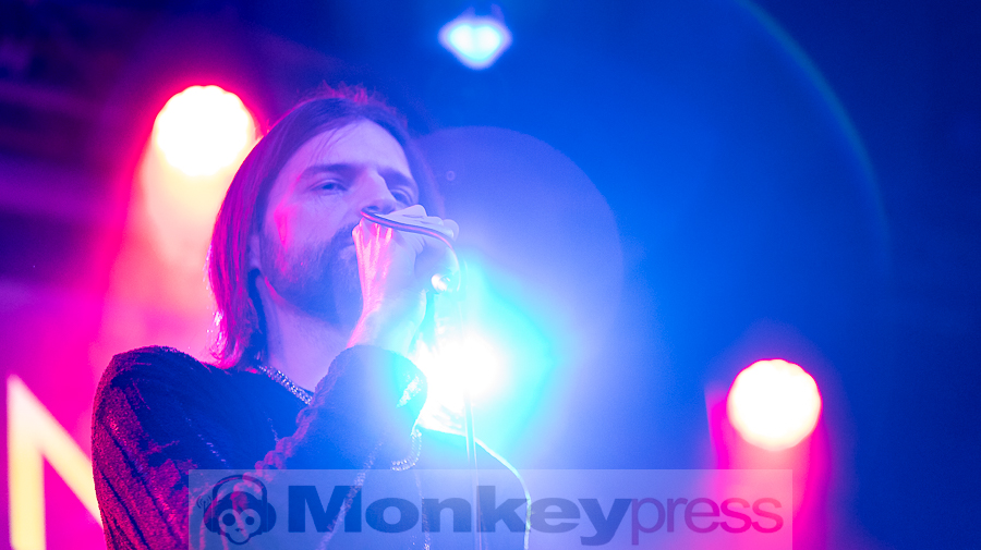 Spaß hatten dann letztlich scheinbar recht viele der Anwesenden. Mit fortschreitender Auftrittsdauer wurde der Applaus lauter und gerade die älteren Stücke Keep Your Eyes Peeled und Night Is Mine kannte dann doch wohl schon der eine oder andere Fan aus den einschlägigen Szene-Diskos. Mit ausgiebigen Zwischenansagen hielt sich Sam zurück, oft lassen Ultra Sunn in ihrem dreiköpfigen Live-Line-up für solche aber ohnehin keinen Raum, da die Lieder nicht selten direkt ineinander übergehen, wie in einem Techno-DJ-Set. Nach 40 Minuten konnte man auch der eher elegant-zurückhaltend agierenden Keyboarderin Gaelle ein freundlich-fröhliches „Merci beaucoup“ von den Lippen ablesen, Sam drückte dem wohl einzigen Fan im Kulttempel mit Ultra-Sunn-Bandshirt am Körper zu dessen großer Freude die Setlist in die Hand – und dann ging das Licht wieder an.