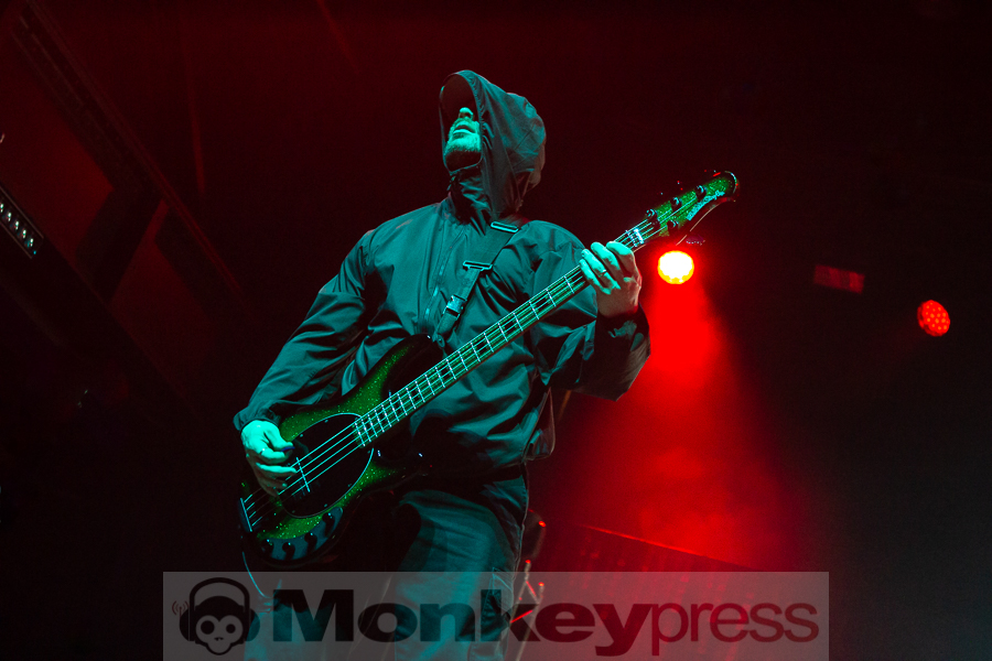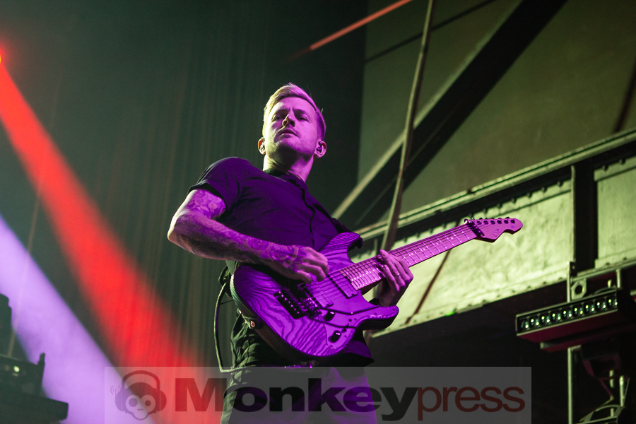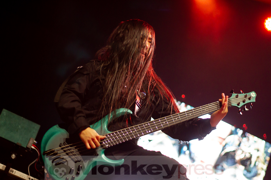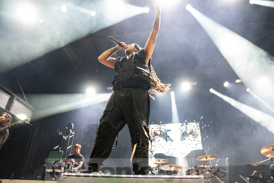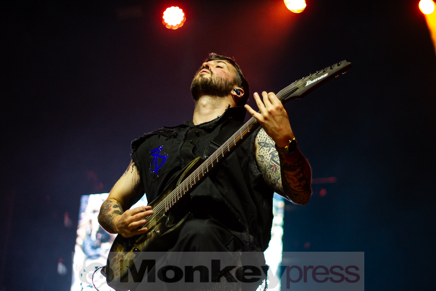 „Who out there is here for our brothers of Fit For a King? This song goes out to the guys. Show me how you do it, Cologne.“ Altered Eyes – einer der heftigsten Tracks der Jungs verursachte gar einen kurzzeitigen Stau unter den Crowdsurfern. Rasend schnelle Riffs trafen auf brutale Breakdowns. Ausladend schlug Michael Leo Valeri dazu auf seine Percussions ein. Kyle zeigte sich sichtlich zufrieden: „Thank you guys. I like what I see. Let’s do it again. Split the middle!“ In Exodus setzte Anderson zum ersten Mal melodische Clean-Vocals ein, die dem bisherigen Sound nun die leicht monotone Note nahm. Trotz der angenehmen Momente ging der Song immer wieder in knüppelharte und chaotische Passagen über.