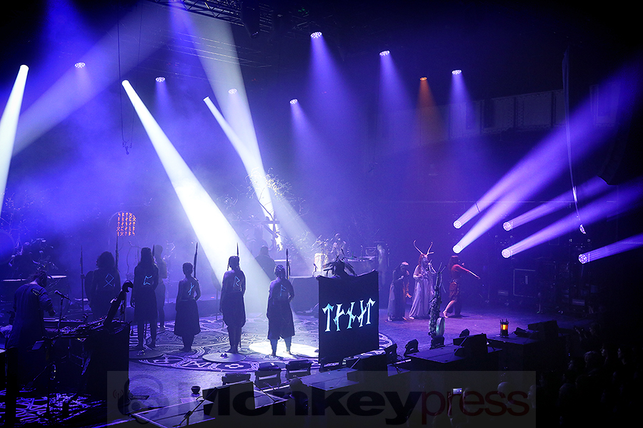 Mit „Urbani“ und „Tenet“ nahm das Ritual erneut an Intensität zu. Die Dynamik der Darbietung wechselte zwischen fast meditativen Klangflächen und eruptiven, rhythmusgetriebenen Höhepunkten. „Othan“ steigerte diese Entwicklung weiter: Donnernde Trommelschläge und kraftvolle Chorgesänge trieben die Energie im Raum auf einen Höhepunkt zu. „Anoana“ und „Nikkal“ bewiesen die einzigartige Fähigkeit der Band, alte Melodien und Texte in ein modernes, atmosphärisch dichtes Klangbild zu kleiden, das nichts von seiner ursprünglichen Kraft verloren hat. „Elddansurin“ setzte schließlich zu einem letzten ekstatischen Ritual an, bevor „Hamrer Hippyer“ mit voller Kraft das Finale einleitete. Alle Musiker auf der Bühne tanzten, ließen sich von der wilden Energie mitreißen und teile der Gruppe das Publikum zusätzlich anheizten und mitreißende Crowd-Surfs initiierten – es war ein Moment, in dem Musik, Körper und Geist vollkommen miteinander verschmolzen.