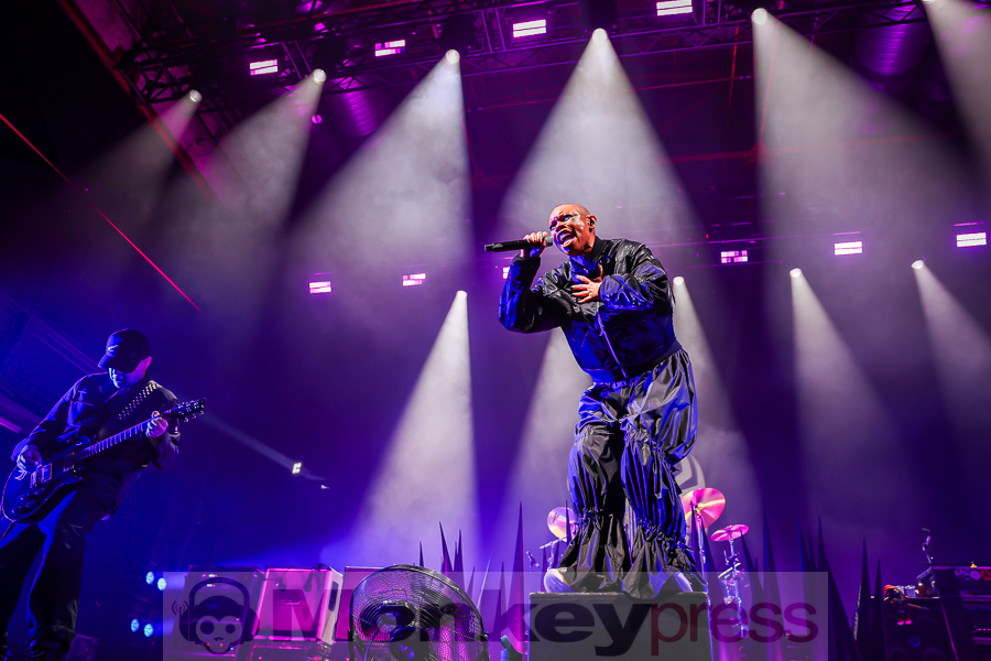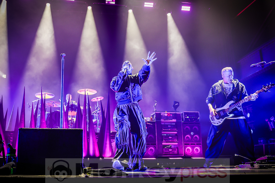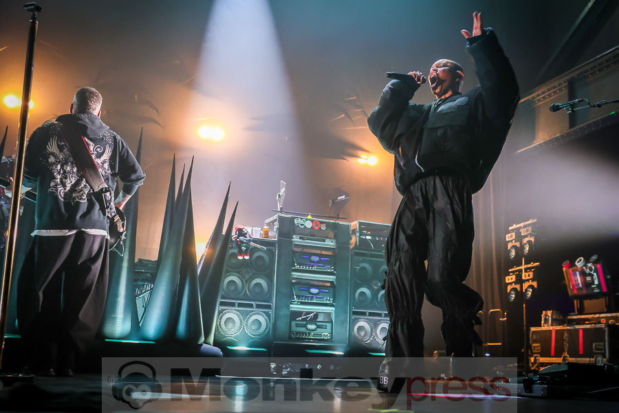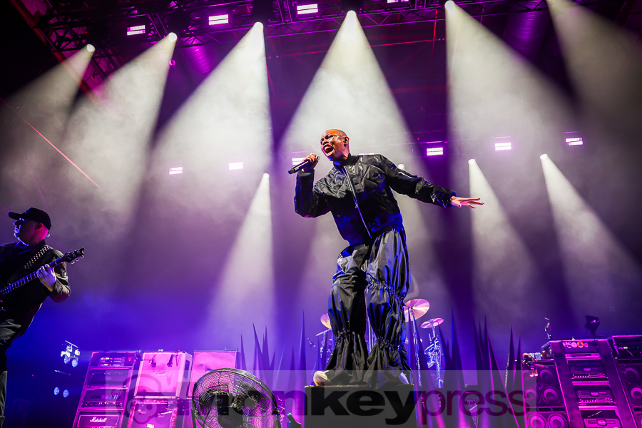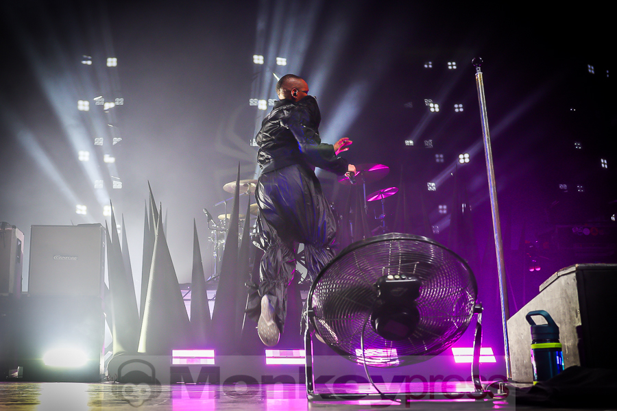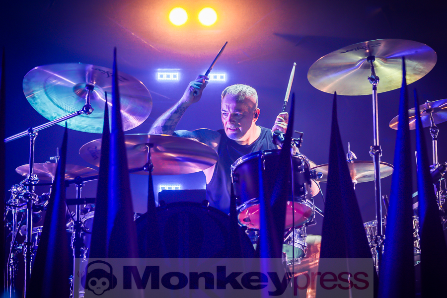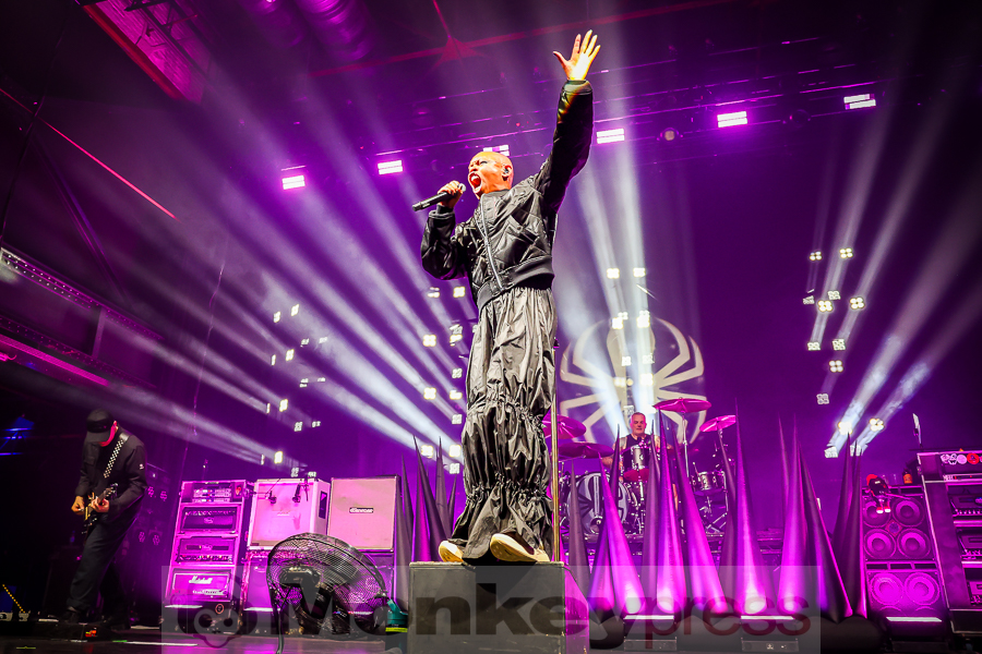 Zu dem aufgebrachten Kracher „Yes, It’s Fucking Political“ spornte die Fronterin ihre Crowd weiter an: „Where is the moshpit? Can I get it?“ Dieser entstand erst zaghaft, wurde dann aber doch deutlich sichtbar und wuchs zu „The Skank Heads (Get Off Me)“ weiter an. Und Skin gönnte ihren Fans keine Pause – „Where is my circle?!“ rief sie wieder und wieder und natürlich konnte dieser begnadeten Powerfrau niemand einen Wunsch abschlagen. Abwechselnd schmiss die Sängerin bei dem Song „Tear The Place Up“ ihre Beine in die Luft, ehe sie sich Drumsticks schnappte und Mark stehend an den Drums unterstützte. Und sie konnte es nicht lassen: „Where is my circle?“ Mit einem riesigen Sprung landete die Frontfrau sicher auf ihren Füßen, um den Song abzuschließen. Für wenige Minuten verließen Skunk Anansie nun die Bühne.