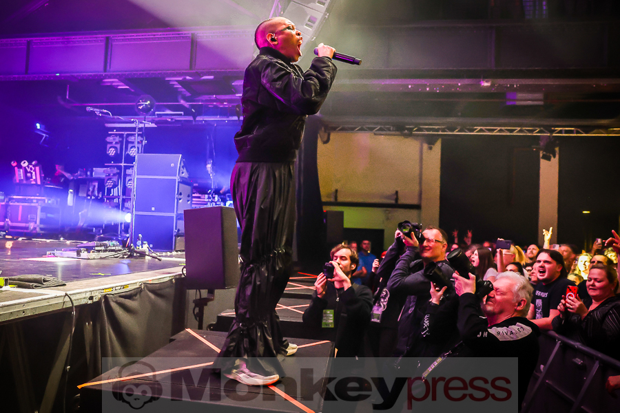 „Listen, we have a brand new album. When is it out?“ -“ May 23rd“ lautete die stimmstarke Antwort der Crowd. „Oh, you’re such good students. You can come to my class any day. We wanted to play you a single from this new album. Don’t you think that we have just done the most amazing fantastic beauuuutiful job with the panic? Right? -,Cheers‘!“ Und die Single entpuppte sich als weiteres Energie-Biest. Der Song entfaltete eine rohe, explosive Kraft, die durch die wuchtige Instrumentierung und Skins leidenschaftliche Performance noch verstärkt wurde. Besonders der treibende Rhythmus und die kraftvollen Gitarrenriffs sorgten für ordentlich Bewegung in der Menge. Inhaltlich ist „Cheers“ eine wütende Abrechnung mit Heuchelei und Selbstgerechtigkeit. Der Song prangert an, wie manche sich selbst als moralisch überlegen darstellen, während sie in Wirklichkeit nicht besser sind als diejenigen, die sie kritisieren. Die bissigen, sarkastischen Zeilen und die unbändige Wut, die Skin in ihrer Stimme transportierte, formierte sich zu einer Hymne der Frustration und des Widerstands.