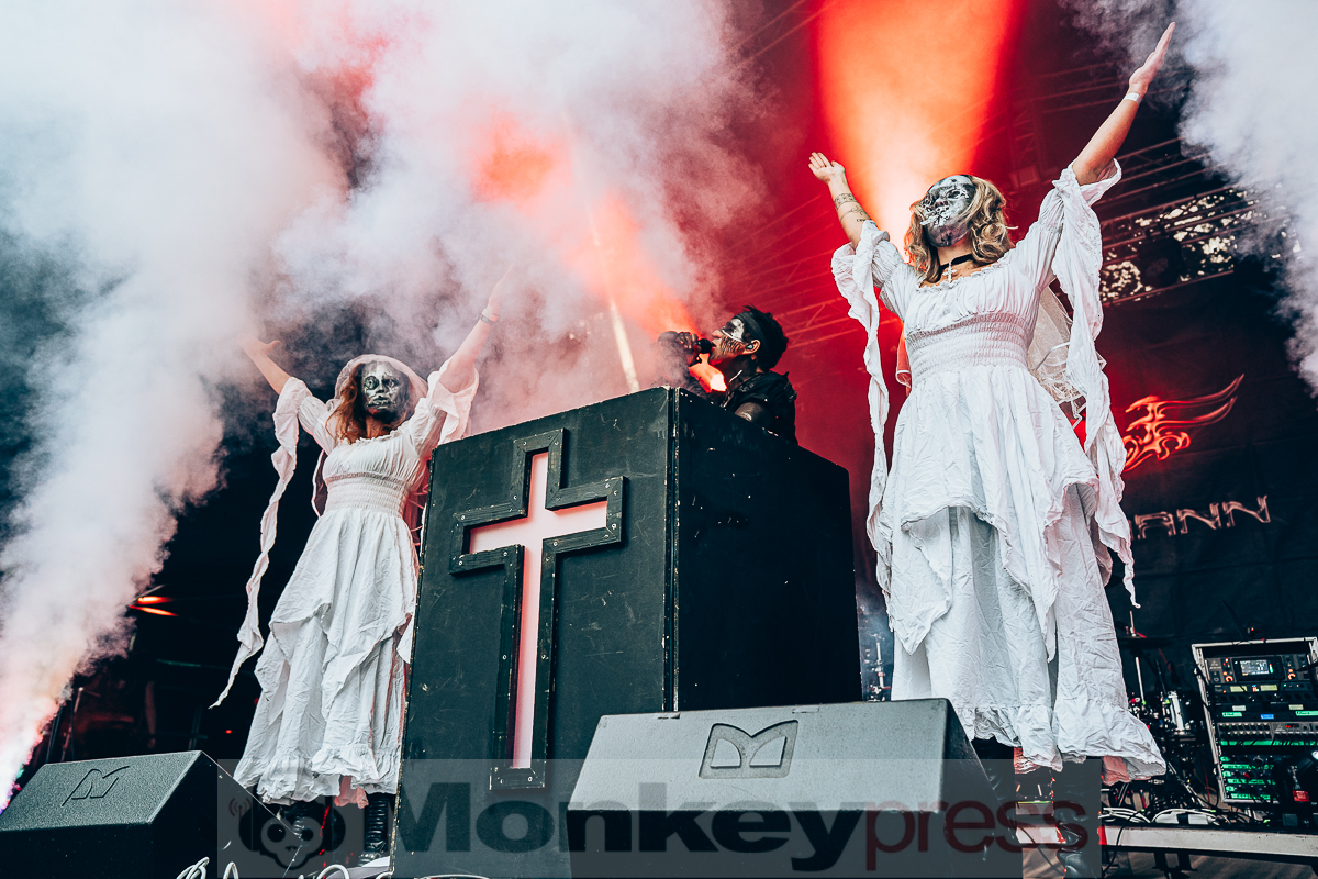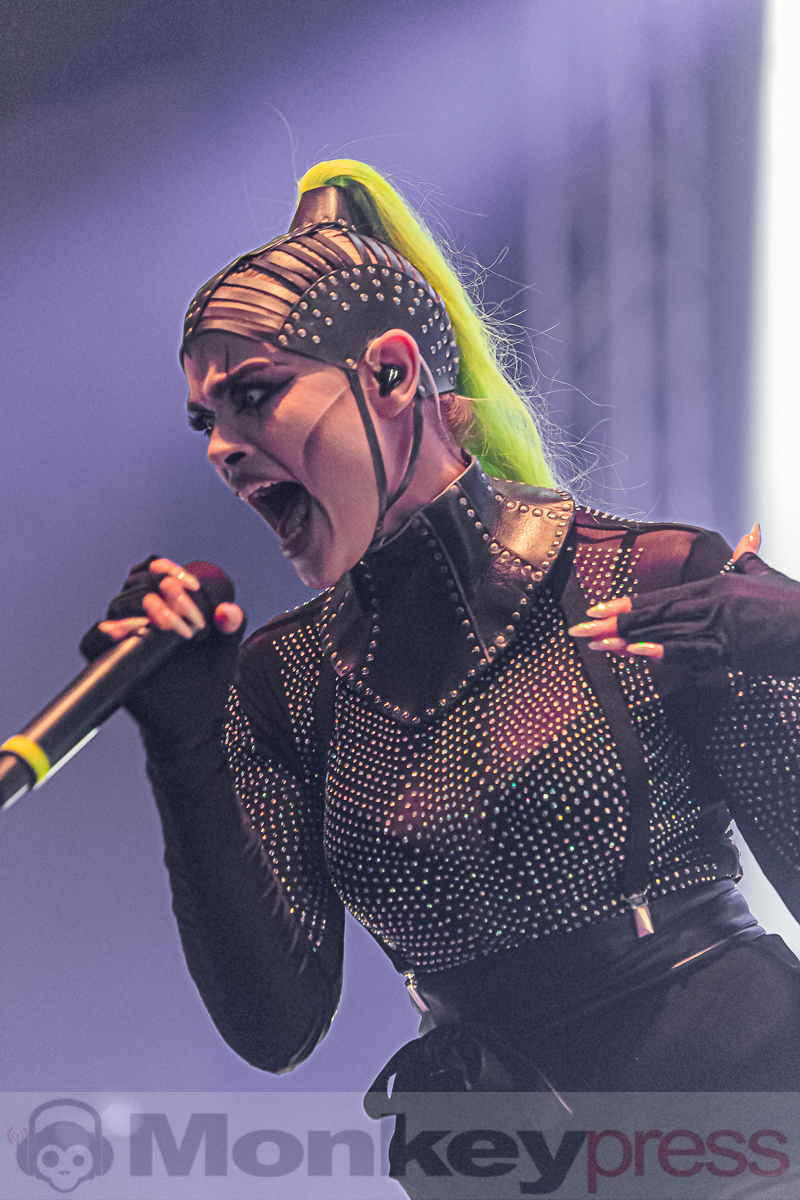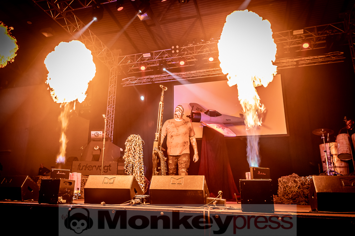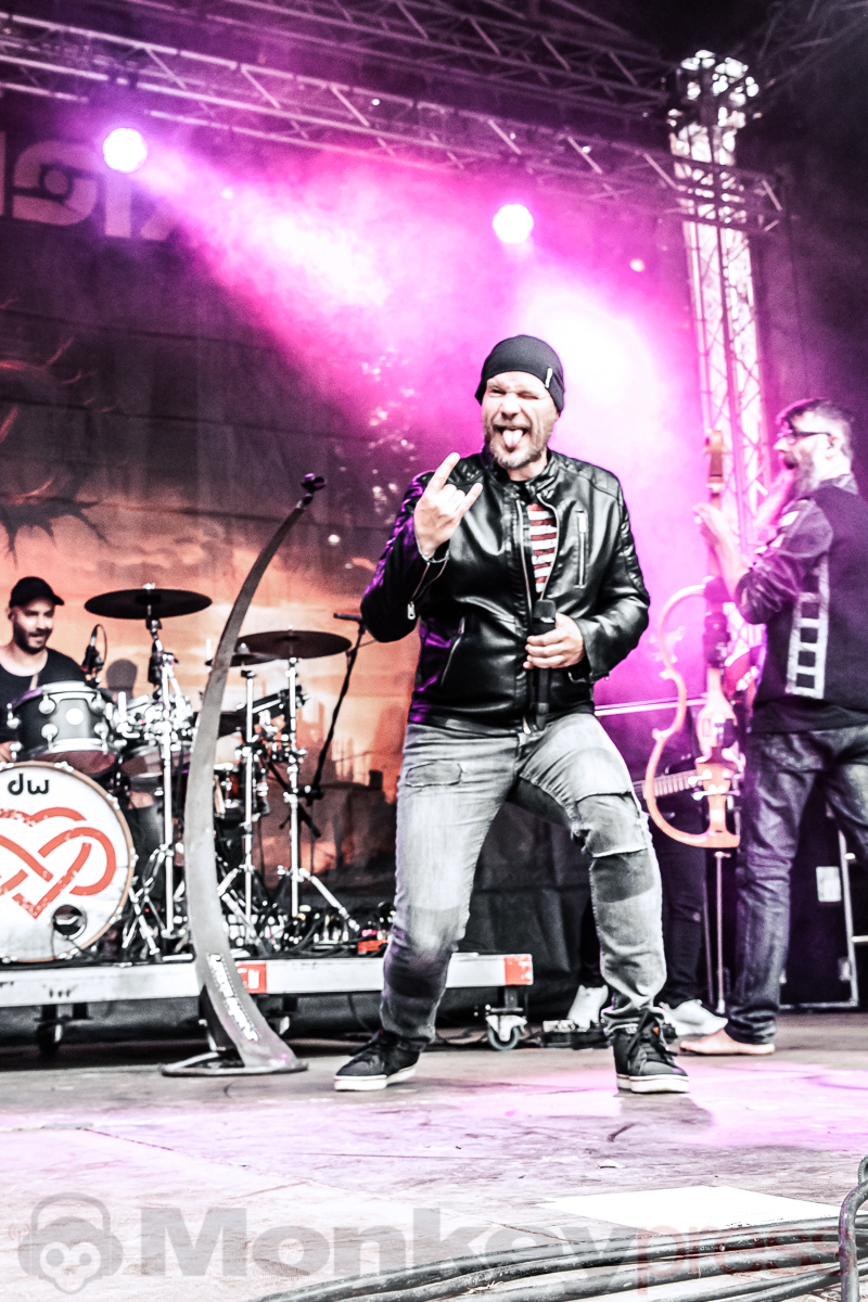 Das sollte sich bei den nachfolgenden Stahlmann nicht ändern. Bei Martin Soer und Mitstreitern weiß man eben, was man bekommt. Neue Deutsche Härte in Reinform, mit allen Stärken und Schwächen, die dieses musikalisch wie lyrisch zumeist recht limitierte Genre so mit sich bringt. Hits schreiben können Stahlmann zweifellos, wie „Der Schmied“, „Süchtig“ oder „Schwarz“ vor euphorischem Publikum einmal mehr bewiesen. Dass Soer & Co. nie so richtig den großen Sprung schafften, dürfte vermutlich am Überangebot im Genre liegen. Für grundsolide Performances sind die Herren mit Vorliebe für silberne Gesichtsschminke aber immer zu haben, so auch an diesem Samstagabend.