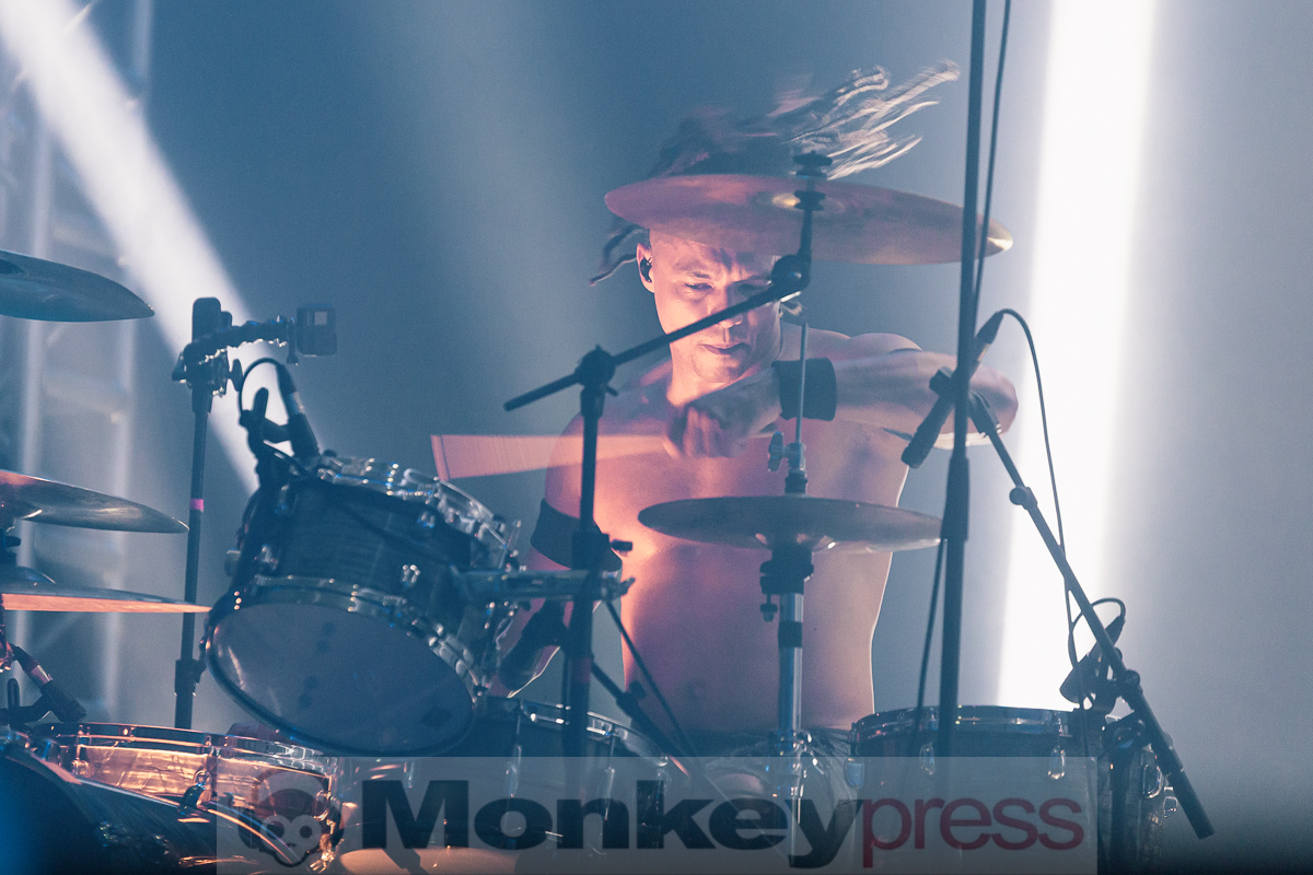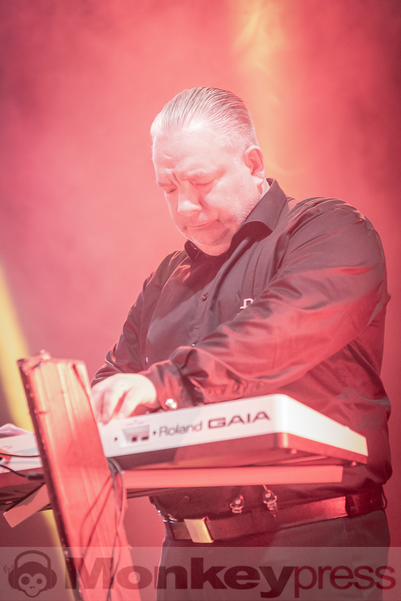 Ganz so lang wie der nun folgende Act ist das schwedische Duo aber nicht im Geschäft. Thomas Lüdke versprach zum 40. Geburtstag von The Invincible Spirit eine Jubiläumsshow mit Gast – hierbei sollte es sich um Chris von Chrom handeln, der einen Tag später mit seinem regulären Projekt im Felsenkeller auftreten sollte und Lüdke bei „Hate You“ stimmgewaltig zur Seite stand. Die Setlist ließ kaum bis keine Wünsche offen: „Love Is A Kind Of Mystery“, „Contact“, „Provoke You“, „Irregular Times“ oder auch das Joy-Division-Cover „Atmosphere“ – Lüdke, begleitet durch Anja und Tank an den Keys, sang sich durch sein beeindruckendes Œuvre, während die Temperatur vor der Bühne immer weiter stieg. Bei „Push!“ gab es dann erst recht kein Halten mehr, und das zackige „Make A Device“ sorgte für den fulminanten Schlusspunkt. Eine wahrlich gelungene Zeitreise!