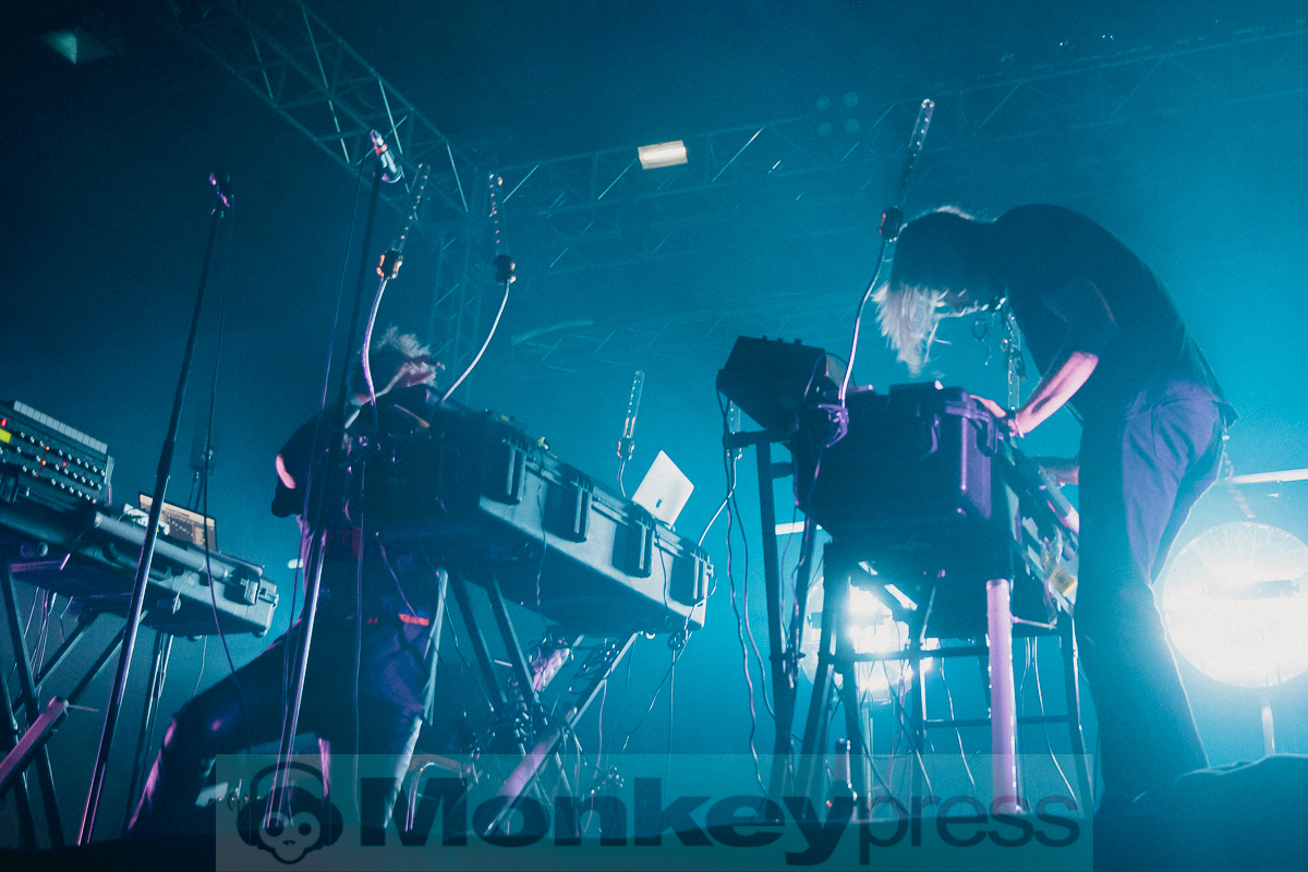 Gleiches gilt für Mode in Gliany, der in der Kantine des Volkspalasts zu sehen und zu hören war. Durchaus minimalistisch, aber doch variantenreich musizierte sich Boris Völt, bei einigen Stücken unterstützt durch eine Sängerin mit sphärischer Stimme, durch sein Set. Sein Sound ist irgendwo zwischen Minimal Wave, Dreampop und Techno einzuordnen. Das perfekte Konzert für alle, die einfach mal elektronische Musik zum Entspannen, aber nicht Einschlafen hören wollten.