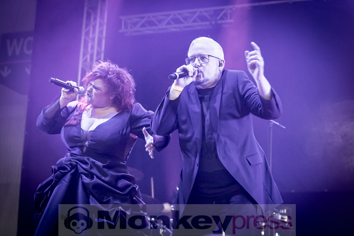 Was für Punker die Sex Pistols sind, sind womöglich KMFDM für Industrial-Rock-Anhänger. In den 90ern prägte die Hamburger Formation das Genre wie kaum eine andere. 1999 gingen die Stamm-Mitglieder Sascha Konietzko, Günter Schulz und En Esch aber getrennte Wege. Letzterer musiziert seit 2009 gemeinsam mit Sängerin Mona Mur. Letztere ist mit ihrem unverwechselbar düsteren Diva-Timbre seit Anfang der 80er-Jahre unterwegs. Im wunderschönen Volkspalast spielte das Duo von Live-Drums unterstützt eines seiner seltenen Konzerte und war erstmals seit 2010 beim WGT zu Gast. Mal schnell und rockig, mal langsam und lasziv spielt sich Mur und Esch durch ihre Platten und erhielten vom leider nicht allzu zahlreich anwesenden Publikum kräftigen Applaus. Ein besonderer Auftritt mit kurzweiligem, abwechslungsreichem Cabaret-Rock, ein sehr interessanter Farbtupfer im Line-up.