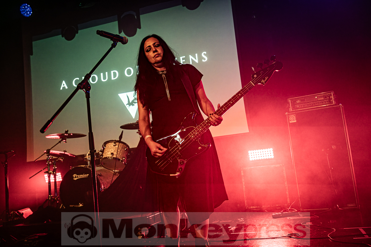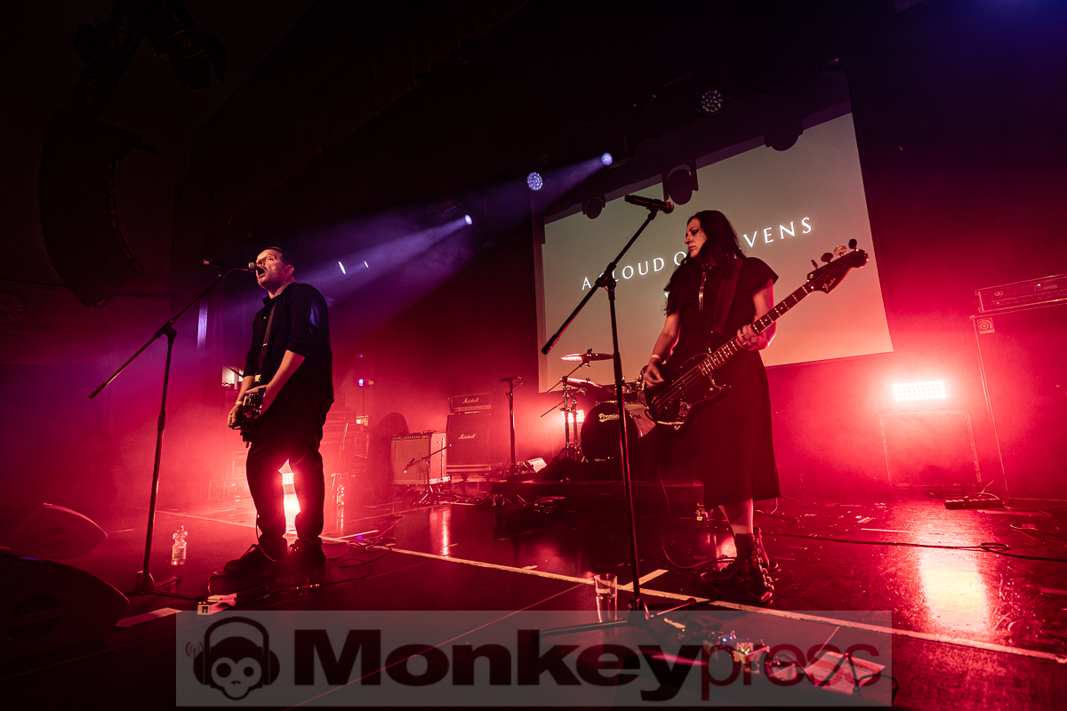 An gleicher Stelle sollte der Montag beginnen. So ein Festival soll ja dazu da sein, neue Bands zu entdecken. Was mit A Cloud of Ravens formidabel funktionieren sollte. Matthew McIntosh und Beth Narducci gehörten zu den Acts mit der längsten Anreise, das Duo stammt aus New York und befindet sich aktuell zum zweiten Mal in der erst jungen Bandgeschichte auf einer kurzen Europa-Tour. Musikalisch ist das Gebotene irgendwo zwischen Dark Wave, Post Punk und Alternative Rock einzuordnen, McIntosh bringt einen Großteil des Gesangs und Gitarre, Narducci ergänzende Vocals und Bass. Die Drums kommen aus der Dose – nicht ungewöhnlich in diesen Genres. Die Songs, größtenteils vom aktuellen Album „Lost Hymns“ stammend, sind gespickt mit starken Melodien und Refrains. Wenig überraschend also war der Jubel lauter Natur und die Schlange am Merchstand nach der Show recht lang. McIntosh und Narducci verkauften CDs, Vinyl und Shirts gänzlich selbst und waren sehr empfänglich für Small Talk. Ein rundum gelungener Auftritt, auf den hoffentlich weitere in Deutschland folgen werden. Kurios: Wenige Meter weiter tauchte plötzlich John „Johnny Rotten“ Lydon auf. Der frühere Sänger der legendären Sex Pistols war tags zuvor mit Public Image Ltd. beim WGT aktiv und hatte es mit der Abreise offenbar nicht zu eilig. Gut gelaunt setzte er seine drei Kreuze unter einige Bücher und Platten – schön, wenn sich so eine Ikone so fannah präsentiert.