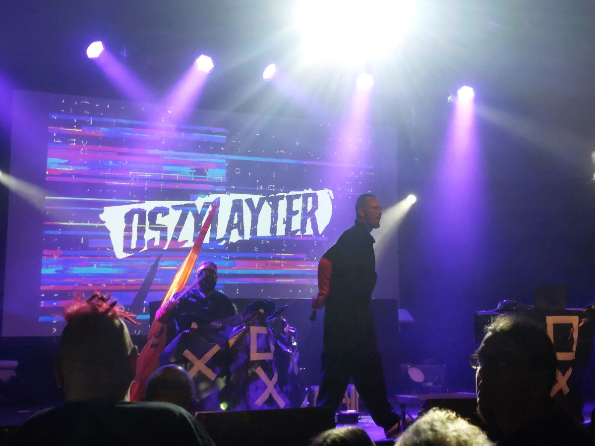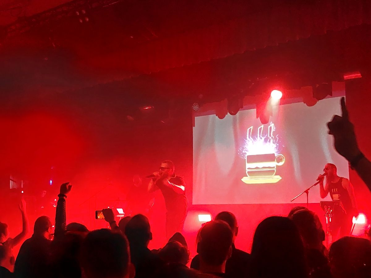 Dies gilt beispielsweise für das traditionelle EBM-Warm-up im Felsenkeller am Donnerstag vor dem Beginn des eigentlichen Treffens. Für die Organisatoren war spontanes Handeln gefragt. Mit Verrottet und Coinside mussten gleich zwei Acts wenige Tage respektive Wochen vorher absagen. Der eine Ersatz, der den langen Abend eröffnen sollte, passte musikalisch nur mäßig. Denn Oszylayter, das noch recht neue Projekt von Full Contact69-Fronter Andreas Schubert, ist eher im Big-Beat-Bereich anzusiedeln. Heißt: Wer es mit The Prodigy, den Chemical Brothers oder Pendulum hält, dürfte hier mächtig Spaß gehabt haben – das Debütalbum „Hate This Day“ ist seit November 2023 erhältlich. Das Publikum reagierte größtenteils aber noch recht zurückhaltend. Die Meisten schienen auf klassischen Sequenzer-Stampf gewartet zu haben. Den gab es im Anschluss aber von den einsprungenen NordarR, die mit „Ein Mann mehr“ oder „RIP“ schon deutlich lautere Reaktionen ziehen konnten.