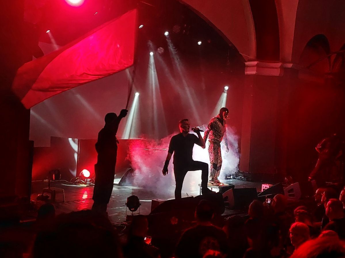 Nach gut 60 Minuten voller Stakkato-Tieftöner-Riffs stand der Rückweg zur Agra-Halle an. Denn uns erwartete nicht mehr und nicht weniger als die Wiedergeburt einer EBM-Legende. Im Februar 2020 veröffentlichten Pouppée Fabrikk ihr Album „Armén“, spielten auf dem E-Only-Festival in Leipzig ein Konzert – und dann legte Corona die Welt lahm. Tourpläne wurden verworfen, Frontmann Henrik Björkk kümmerte sich um Nebenprojekte wie das Ritual-Dark-Ambient-lastige Maschinenzimmer 412. Die Fans des Hauptprojekts schauten in die Röhre, Pouppée Fabrikk gaben keinen Mucks mehr von sich. Nun also nach fast 5,5 Jahren endlich wieder ein Auftritt – und was für einer. Knaller von „Armén“ wie „Only Control“ oder das in Muttersprache verfasste „Kom ta min smärta“ gesellten sich zu Klassikern wie „Watch Your Sex“, „Weak Men“ oder dem unerbittlich hämmernden „Stahlwerk“. Zum Brecher „T.O.T.D.N.“ von 1991 erhielt der Zwei-Meter-Hüne Björkk Unterstützung von Spetsnaz-Pontus, der in einem unfreiwillig komischen Moment offensichtlich gut angeheitert erst einmal ein funktionierendes Mikro suchte, sowie Torny Gottberg von Project-X. Und hinten raus? „Summon The Spirits“, „Die Jugend“ und „Keine Zukunft“. Ein Auftritt, der wohl jeden Fan der Brachial-EBMer zufrieden stellte. Hoffentlich verschwinden Björkk, Leif Holm und Christian Riemslag jetzt nicht wieder über einen derart langen Zeitraum von der Bildfläche – immerhin ein weiterer Auftritt mit Spetsnaz beim „Bodyfest“ in der schwedischen Heimat für Oktober wurde bereits angekündigt.