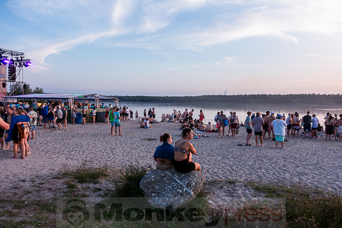 Wir brauchten bei all dem Staub dann dringend etwas zu Trinken und ruhten uns eine Weile im Schatten aus. Dabei fiel uns auf, dass es in diesem Jahr irgendwie in war, sich am ganzen Körper mit Glitzergel einzureiben. Auch Bad Taste-Klamotten waren wieder einmal der Hit. Und den ganzen Tag war ein Tross zum Strand und vom Strand zurück zu sehen. Badeklamotten war dementsprechend auch der Renner. Nach den Konzerten fand am Strand außerdem jeden Tag noch eine Disco bis in die Morgenstunden statt und da war immer was los.