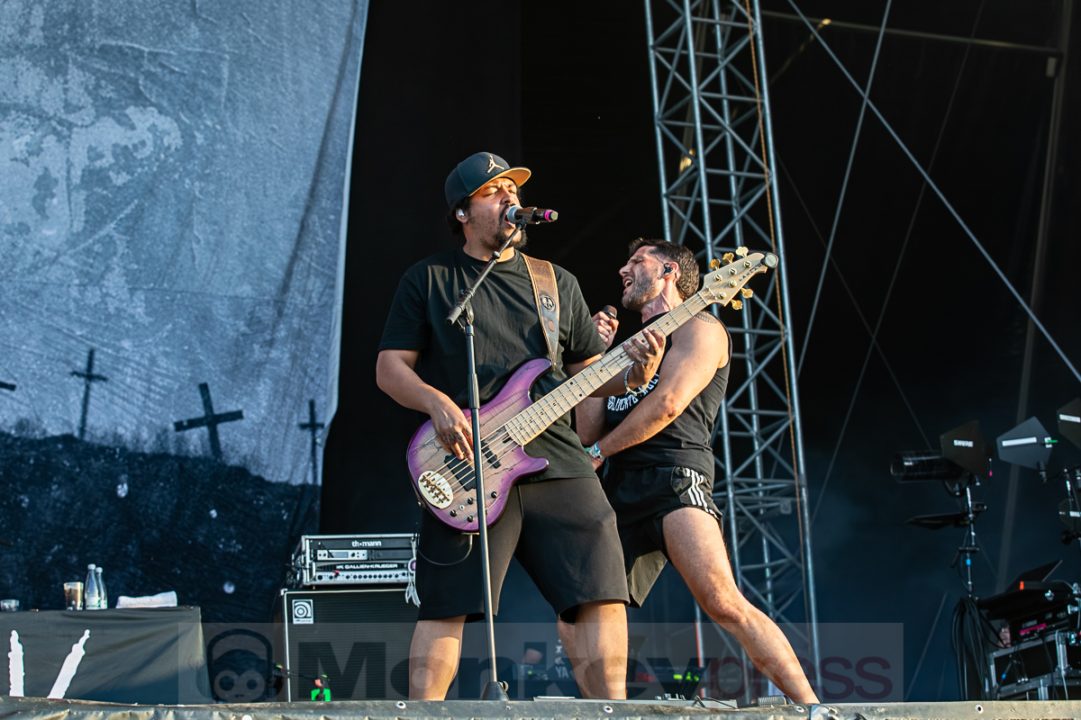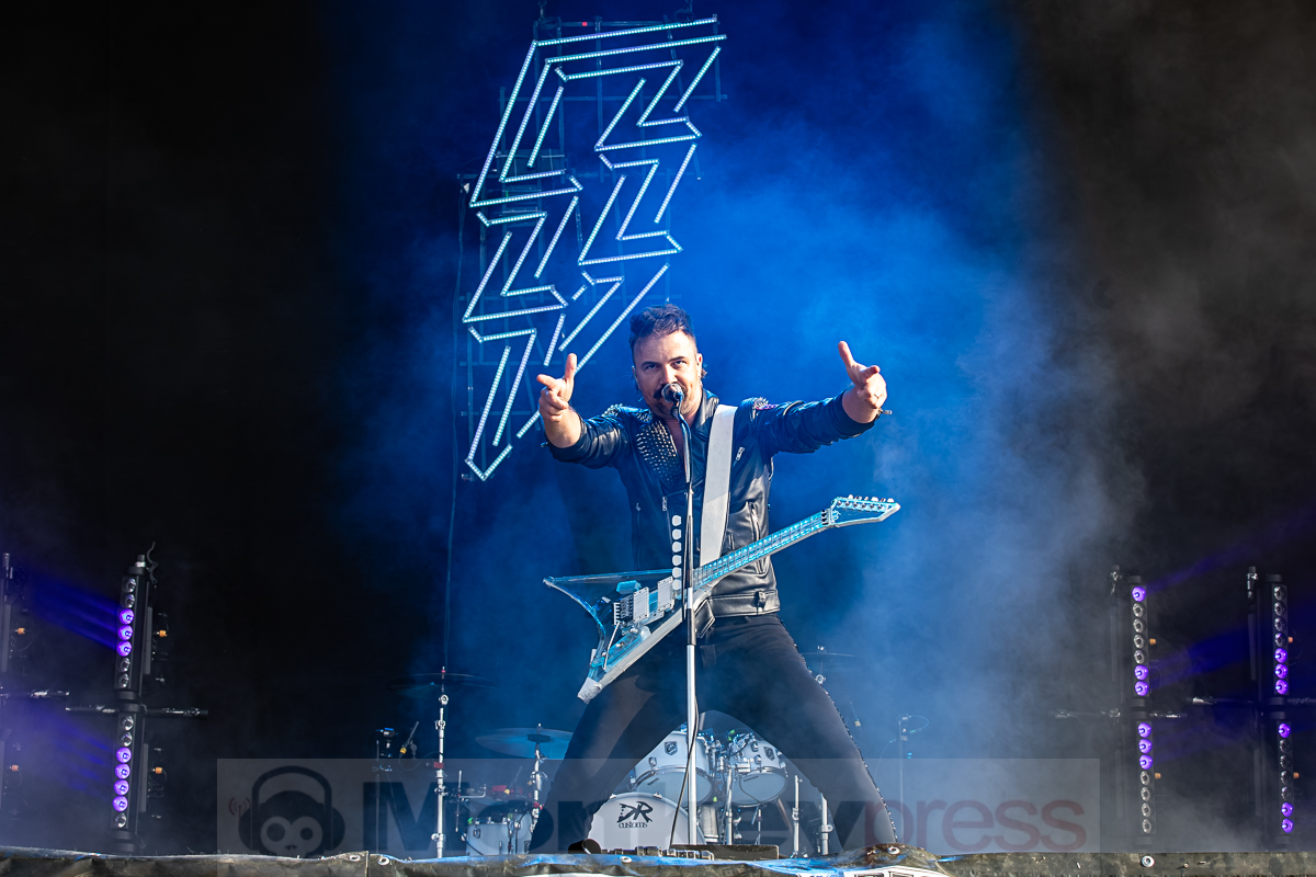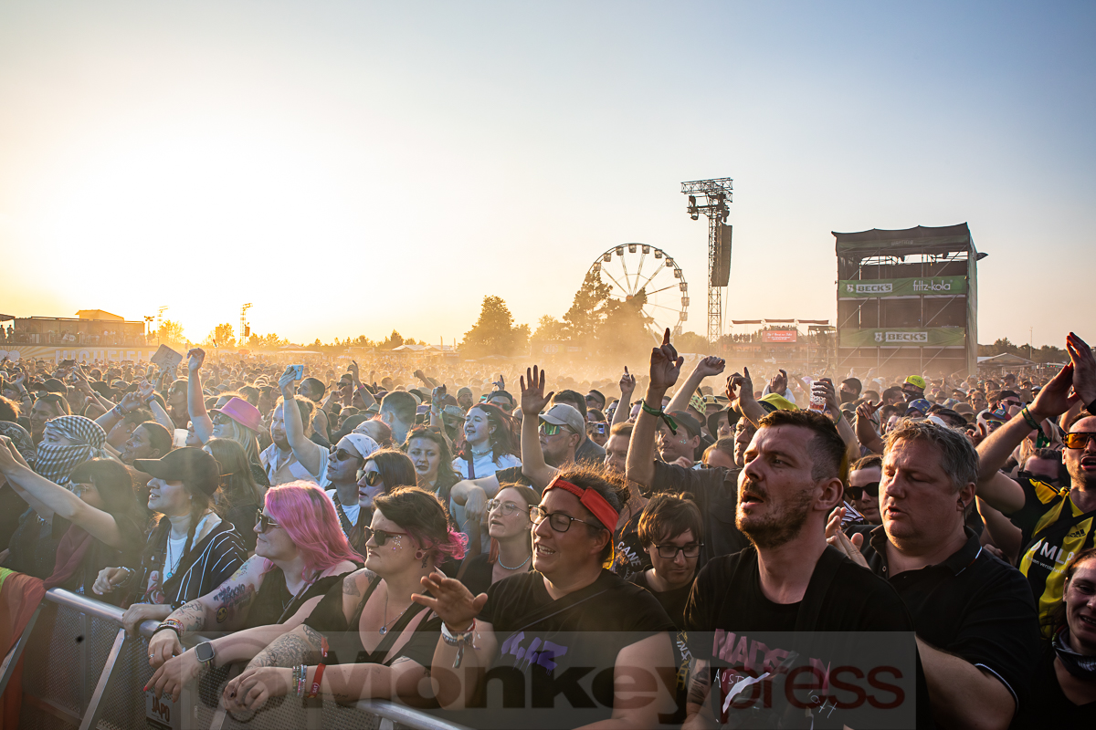 Sie gingen immer mal wieder einen Schritt nach hinten, um für einen Moment im Schatten abkühlen zu können. Das half aber nur temporär, denn sofort wurde wieder weiter gerockt. Ihre Energie und gute Laune waren ansteckend und dann war plötzlich Ruhe. Wieder ein Stromausfall auf der Stage, der dieses Mal etwas länger als am Vortag dauerte. Nach einer Durchsage zwischendrin warteten aber alle geduldig darauf, dass es weitergehen konnte. Mit Coversongs wie „Venus“ von Bananarama oder „Battery“ von Metallica sorgten die Musiker wieder für Begeisterung und eine mitgrölende Menge. Insgesamt, trotz Zwangspause, ein souveräner und mitreißender Auftritt. Gern mehr davon.