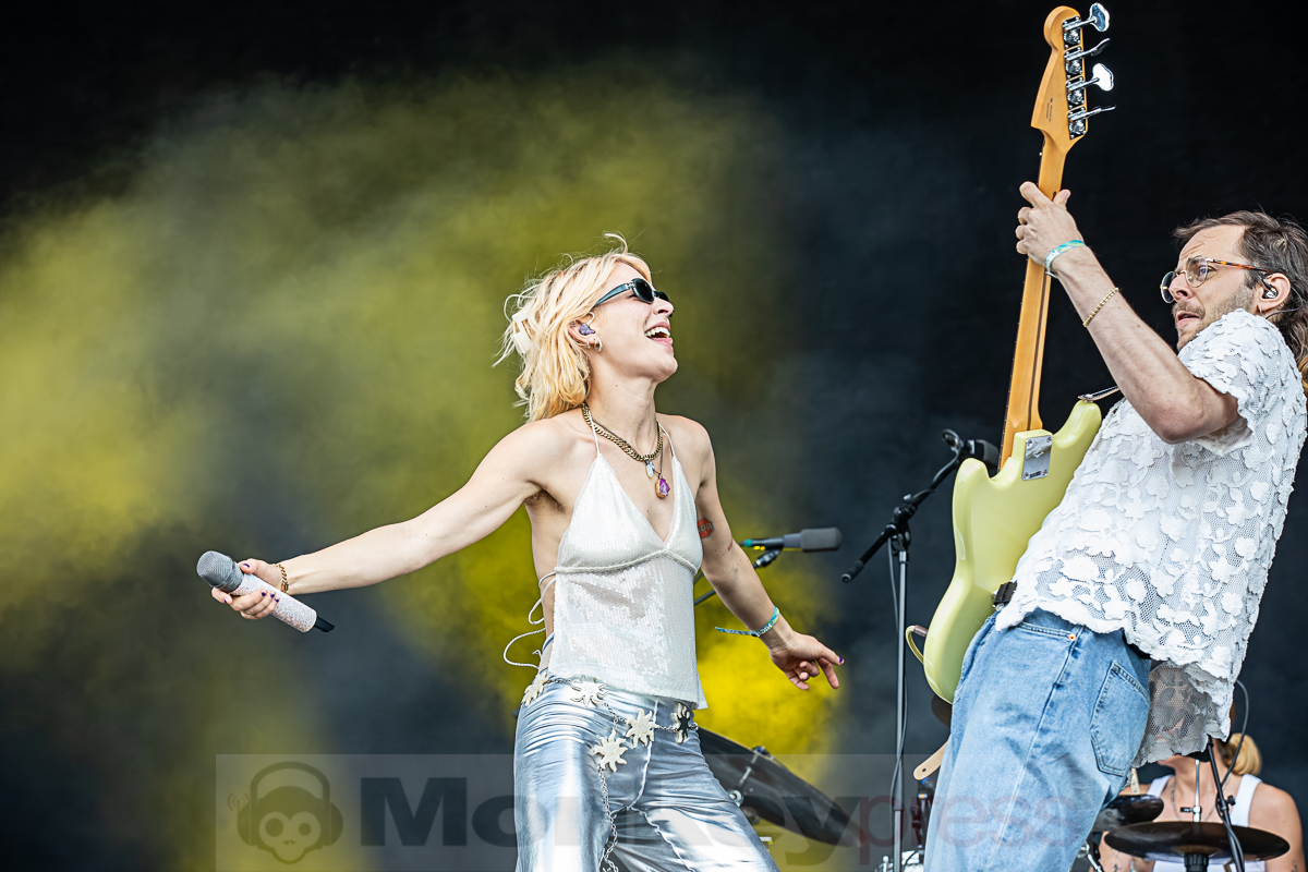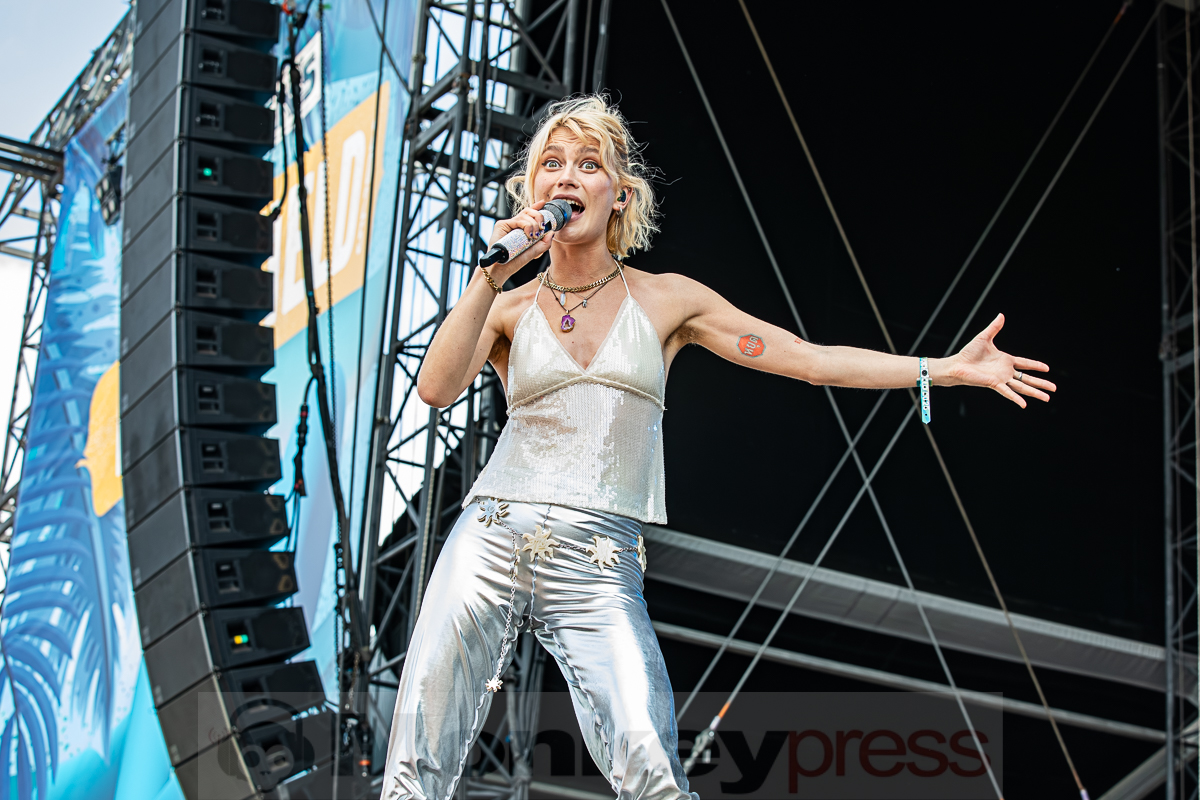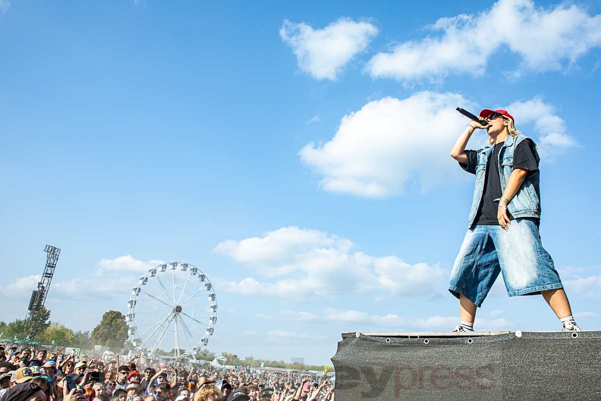 Das nächste Highlight war dann Paula Carolina auf der Blue Stage. Die Sängerin aus Hannover wurde von ihren Fans schon sehnlichst erwartet und mit viel Beifall begrüßt. Sie kam zum Titelsong von „Pipi Langstrumpf“ nach vorn und grinste in die Menge. Zu „Trophäe“ wurde von der ersten Note an mitgeklatscht und auch mitgegrölt. „Wir freuen uns sehr, hier spielen zu dürfen“, so Paula, die auch im Namen ihrer Bandkollegen sprach. Dann machte sie eine Ansage, dass im Pits nichts passieren möge und „Passt auf unsere Flintas auf“. Dafür wurde sie bejubelt und schon ging es mit „Wärs ok?“ weiter im Set. Die Arme waren oben und darüber waberten Seifenblasen umher, die Fans in die Himmel schickten. Es ging gut ab und dann klingelte auf einmal das Telefon. Paula ging ran und schon erklang „Otto Normal“. Alle tanzten um die Wette und Staub war wieder einmal der ständige Begleiter.