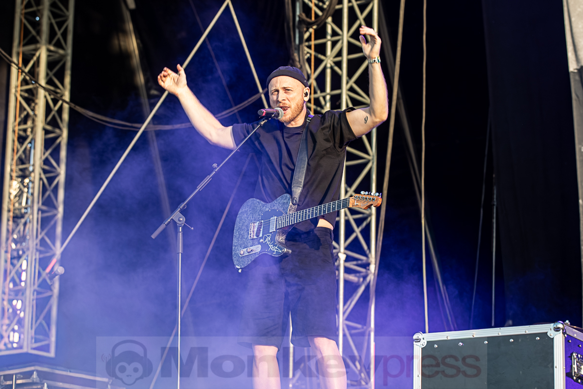 Sie hatten in ihrem Set neuere und auch „Oldschool“-Songs dabei, wie „Die Perfektion“. Und als Kindheitserinnerung stimmten sie den Song der Trickfilm-Serie Wickie an. Hier wurde ausgelassen mitgebrüllt. Das war einer dieser besonderen Momente, die eine großartige Stimmung hatten. Das Spielchen – alle hinsetzen und dann zusammen hochspringen – klappte super und sah von Weitem richtig toll aus. Weitere Highlights dieses Auftritts waren das Robbie Williams-Cover „Angels“ und der große Hit „Du schreibst Geschichte“. Dabei hatten die Künstler Gänsehaut, weil das ganze Gelände mitsang. Coole Nummer! Mit der Aufforderung „Bleibt stabil“ am Ende war dieser Gig dann viel zu schnell vorbei. Uns hat das Ganze echt gefallen – dankeschön!