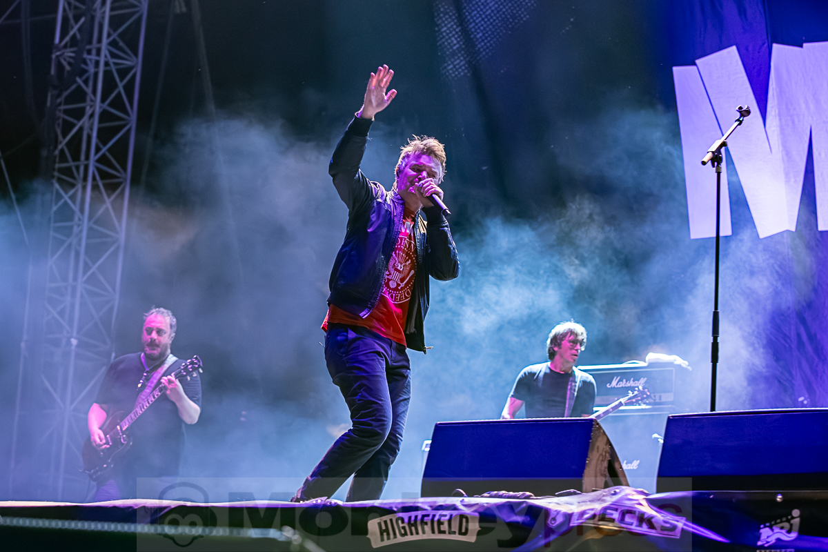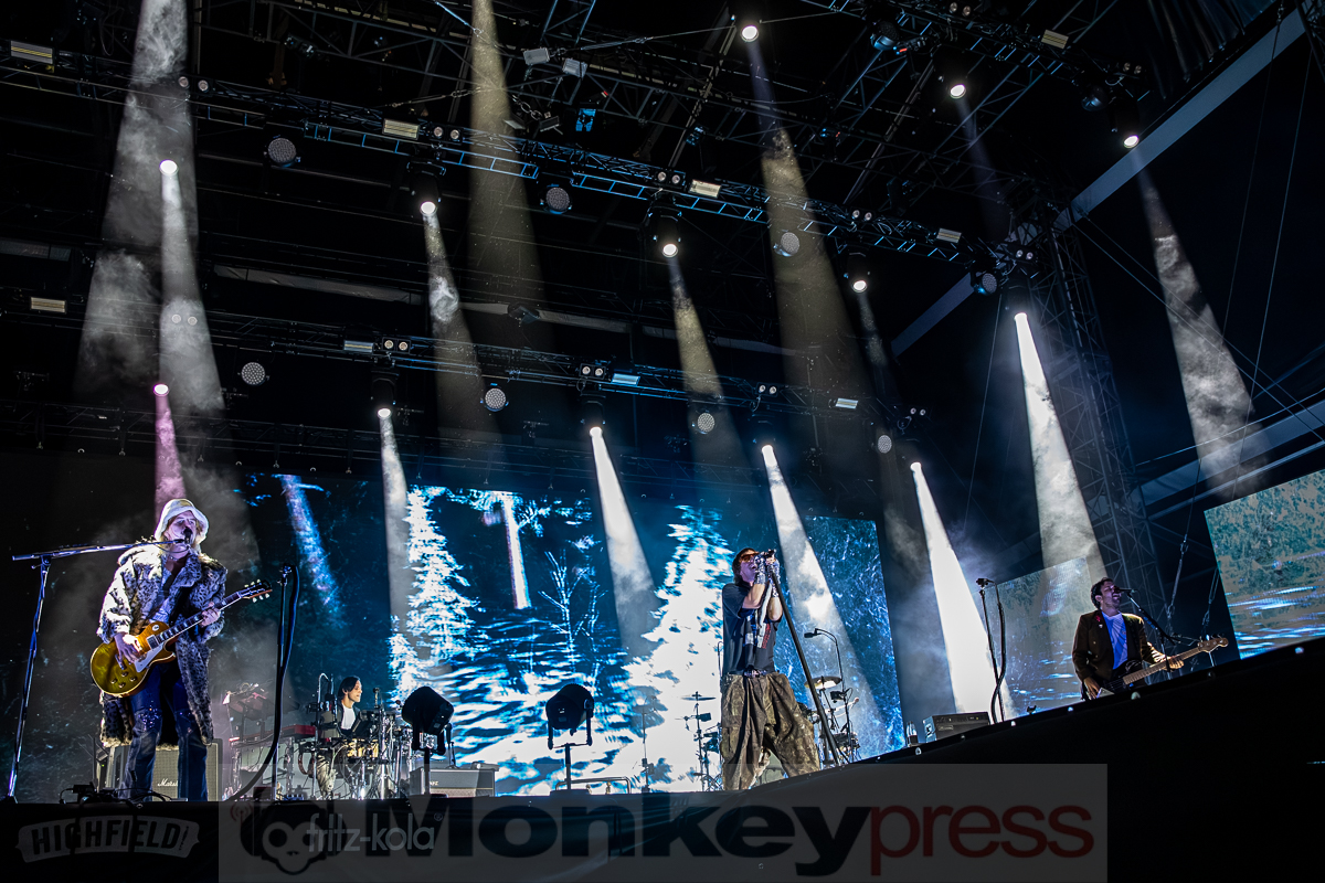 Es war richtig voll hier und alle genossen diese besondere Darbietung mit Liedern wie „Dino“, „Digitales Wunder“ oder „Kitsch“. Das Highfield war für die Band das letzte Festival des Jahres und so gaben sie noch einmal alles. Außerdem verriet Maurice, dass sie vor 10 Jahren das erste Mal hier gewesen sind und als Band schon 20 Jahren gemeinsam Musik machen. Soviele besondere Zahlen, die nun zusammen berockt werden mussten. Die Lichtshow und die Videos auf den vielen Leinwänden waren schick anzusehen. Überall waren Tanzende, die den Tagesausklang auf dieser Stage genossen. Die Arme wippten im Takt oder es wurde mitgeklatscht. Ein gelungener Abschluss!