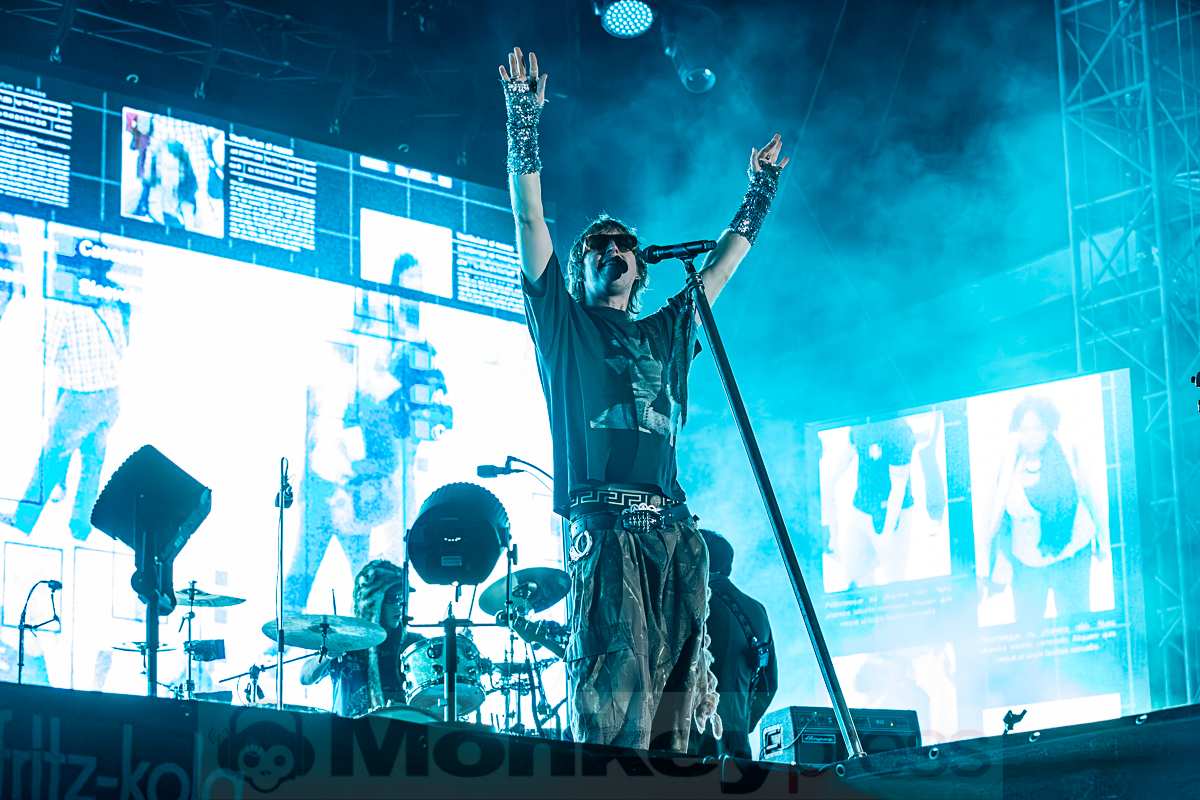Die Herren forderten zwischendrin einen Applaus für alle Securities ein, weil diese einen tollen Job machten – ein cooler Zug. „MC Thunder II“ und „Spaceman“, wo alle Fans laut mitgrölten, waren hier Teil des Sets und es gab noch mehr Hits. Zu „Hypa Hypa“ zogen sich die Jungs um und trugen dann wilde Perücken und diese irren Nylon-Sportanzüge. Bei „Revery“ war auf der Videoleinwand im Hintergrund das Musikvideo zu sehen – ein tolles Gesamtbild. Wir hätten gern noch bis zum Schluss mitgefeiert, denn diese Show war einfach nur brillant. Die Feuershow, das Licht und diese Energie, die die Musiker zeigten – Richtig, richtig gut! Wir waren aber müde und machten uns mit „Hate/Love“ in den Ohren auf den Weg. Eigentlich schade, aber es ging wirklich nicht mehr. Die Band brachte noch weitere Smashhits, die wir aber nicht mehr miterlebten. Wir werden wohl mal zu einem Einzelkonzert der Jungs aus Castrop-Rauxel gehen müssen.