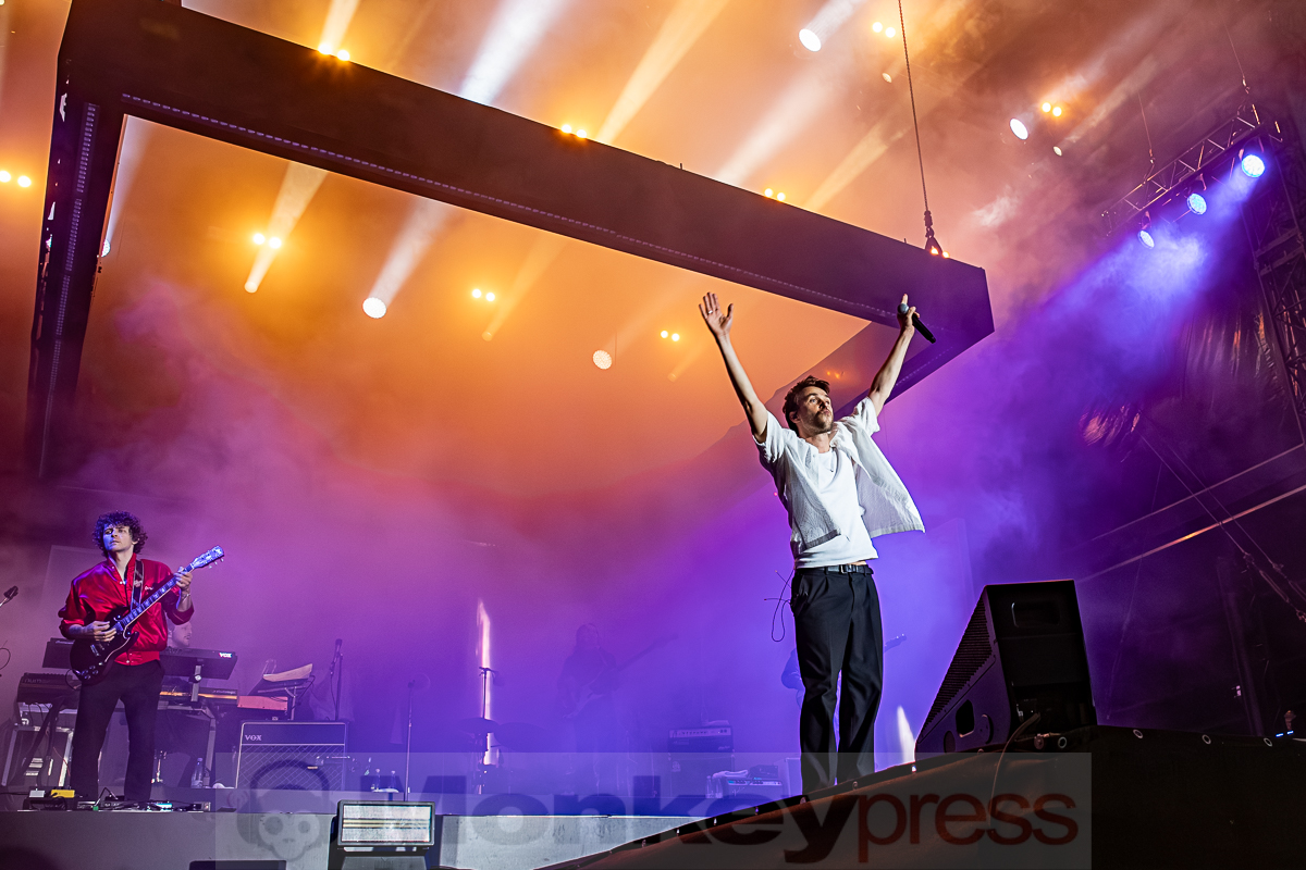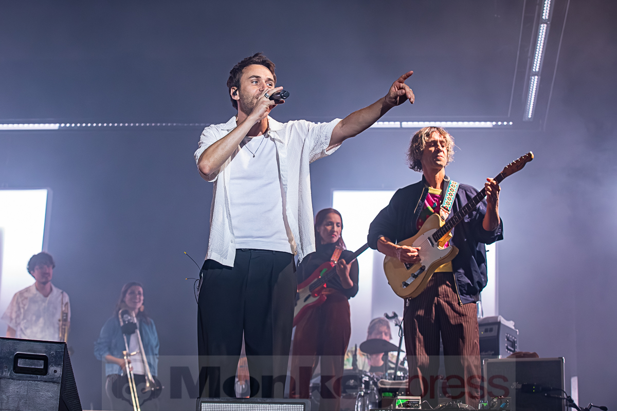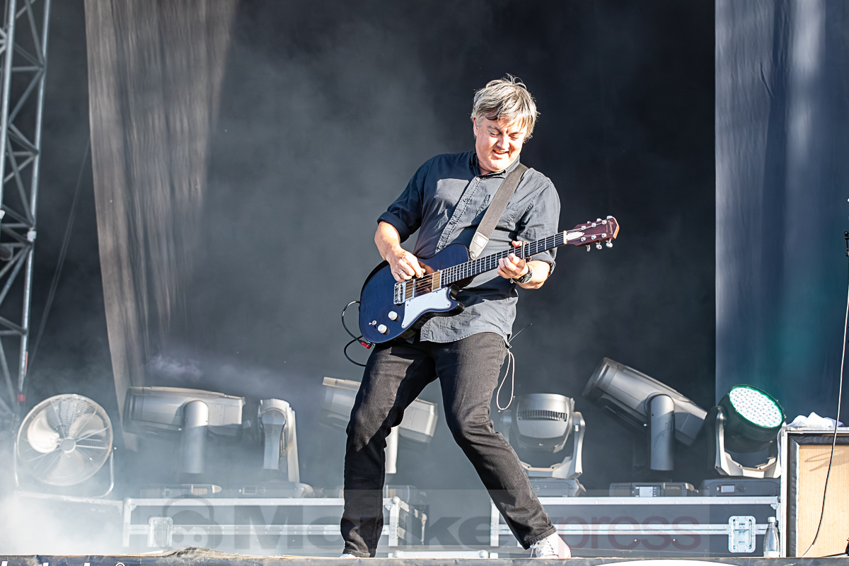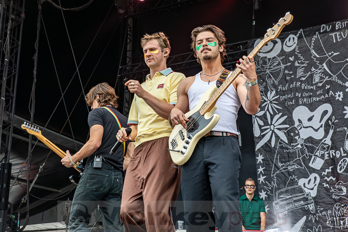 Wir hatten dann plötzlich Hunger und gönnten uns etwas aus dem Angebot der zahlreichen Gastrostände. So gestärkt ging es später zu The Kooks, die ihren Gig aus dem vergangenen Jahr nun endlich nachholen konnten. Die Briten waren gut gelaunt und kamen mit Sonnenhut und Sonnenbrille auf die Bühne. Dann gaben sie ihren Indie-Rock-Sound zum Besten und die Fans freuten sich sichtlich, wie etwa bei „Sofa Song“ oder „Ooh La“. Es wurde getanzt und mitgesungen. Das war dann immer entsprechend laut, denn vor der Stage war es richtig voll, was die Musiker zum Grinsen brachte. Hinter der Band war eine große Videoleinwand, wo immer wieder das passende Musikvideo oder der Bandname zu sehen waren. Luke und Hugh, die Herren an den Gitarren, verausgabten sich und zeigten bei Soli ihre Fingerfertigkeit. Die Songs kamen allesamt gut an, aber als der „oldschool“ Track „Seaside“ erklang, war die Stimmung besonders groß. Und als letztes Schmankerl hatten sie außerdem „Junk of the heart (Happy)“ mit dabei. Lange hatten die Fans auf diesen Auftritt gewartet und so schnell war er schon wieder vorbei. Das Warten hatte sich aber auf jeden Fall gelohnt. Gekonnt ist eben gekonnt.
