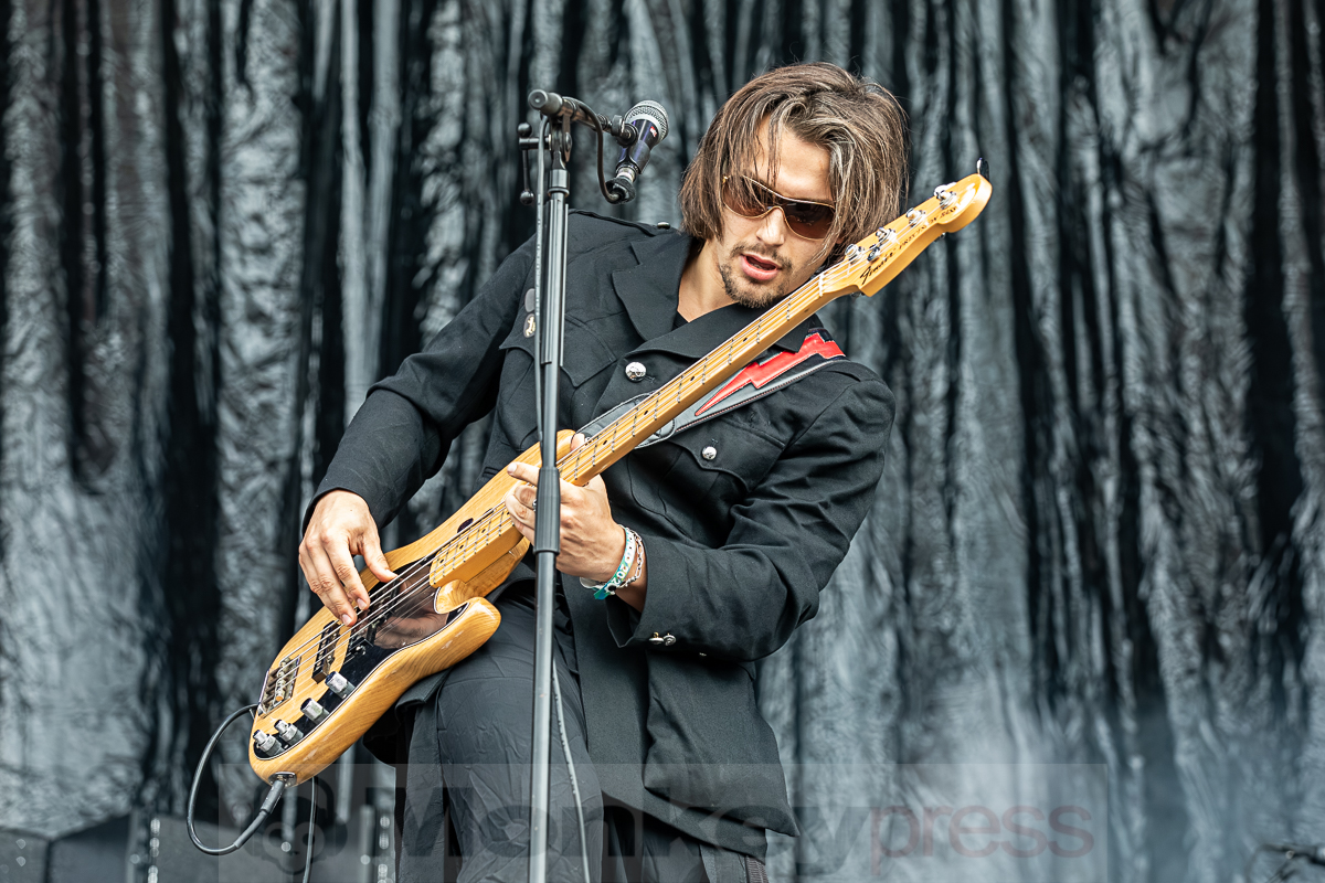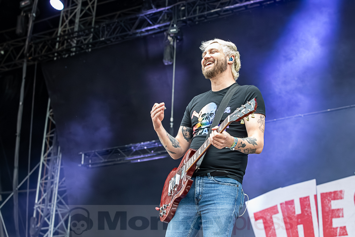 Dann war es auf der Green Stage auch schon wieder soweit – The Subways aus Großbritannien hatten ihren Indie-Rock im Gepäck und es ging mit „Oh yeah“ in die Vollen. Bassistin Charlotte rockte richtig ab und ließ die Haare fliegen. Ihr Kollege Billy begeisterte derweil mit seiner rauen Stimme. Drummerin Camille machte das Trio komplett und sie war wie Animal von den Muppets – absolut wild drauf mit einem tollen Rhythmusgefühl. „Black Wax“, ein Stück „about how much we love music“ ließ das Publikum mitrocken. Die Staubwolke machte sich schon wieder auf den Weg über das Gelände. „Es ist eine große Ehre, wieder hier zu sein.“ Mit ihren Liedern wanderten sie durch ihre Diskografie – mal kamen ältere Stücke zu ihren Ehren und dann wieder neueres Material. Auch „Kiss Kiss Bang Bang“ war an diesem Tag dabei – über „that ONE person, that you can’t get out of your head“. Als Charlotte auch mal ein Lied sang, kam ihre wilde Röhre gut bei den Zuschauern an. Sie und Billy liefen immer wieder hin und her und hatten ihren Spaß. Und am meisten Spaß hatte er, als er sich auf den Händen tragen ließ – Stage Diven dürfen auch die Künstler*innen. Zum Schluss gaben sie noch „Rock & Roll Queen“ zum Besten und wirklich alle vor der Bühne sangen laut mit – saustark.