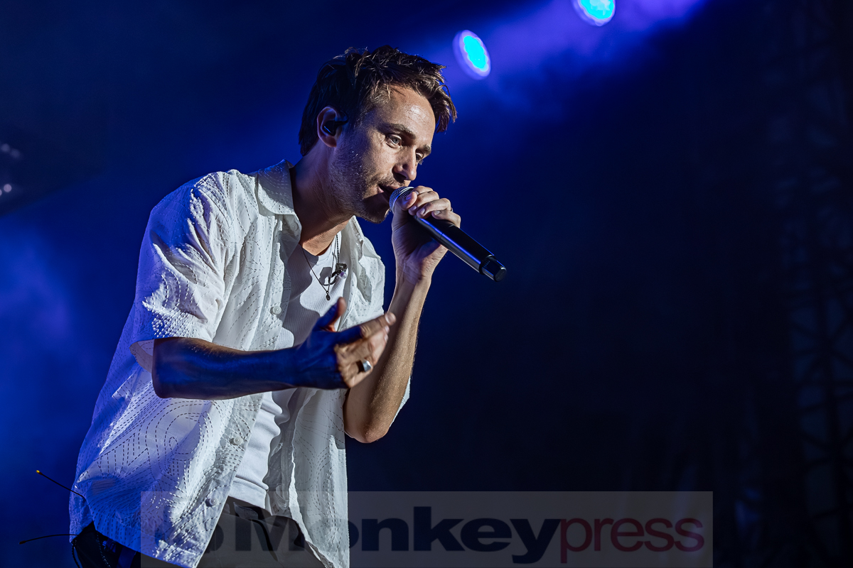 „Das tut so gut, hier zu sein“, so Clueso mit einem Grinsen im Gesicht. Die Musiker der Band agierten toll miteinander – diese Spielfreude mit anzusehen machte echt Freude. So gaben sie Lieder wie „37 Grad im Paradies“ oder auch „Deja-Vu „zum Besten. Der Frontmann lief immer wieder hin und her und stand auch mal auf einem Podest, wo er von unten angestrahlt wurde. Zwischendrin war eine zukünftige Braut spontan auf der Bühne zu Gast – ein toller Moment für sie und ihre Freunde – „das ist ungeplant“. Das Udo Lindenberg-Cover „Cello“ oder später auch „Chicago“ als Zugabe waren weitere Höhepunkte im Set. Und als Clueso dann mitten im Publikum stand und dort sang – was sollte das noch toppen. Wir haben das Ganze echt genossen und das Feuerwerk, das gegen Ende hinter der Stage in den Himmel schoss, setzte diesem Gig dann doch noch die Krone auf. Ein wahrer Headliner – wir sagen vielen Dank!