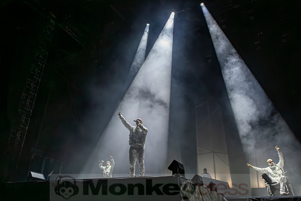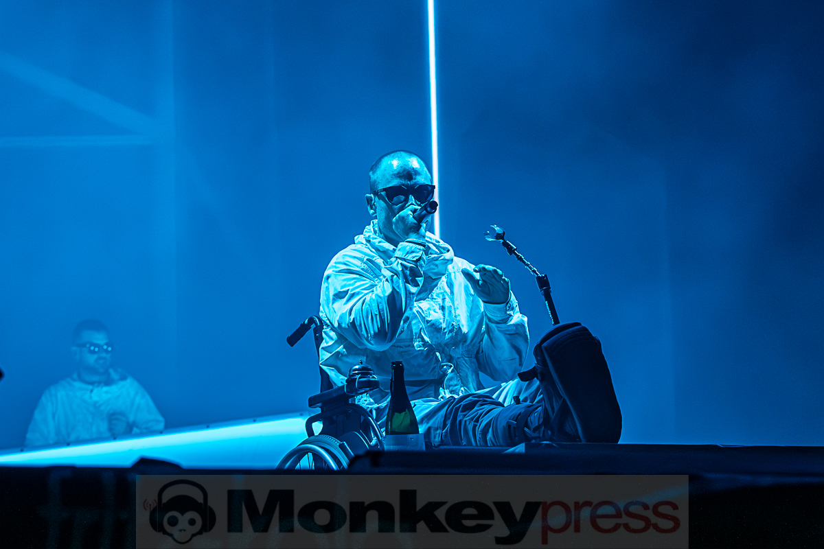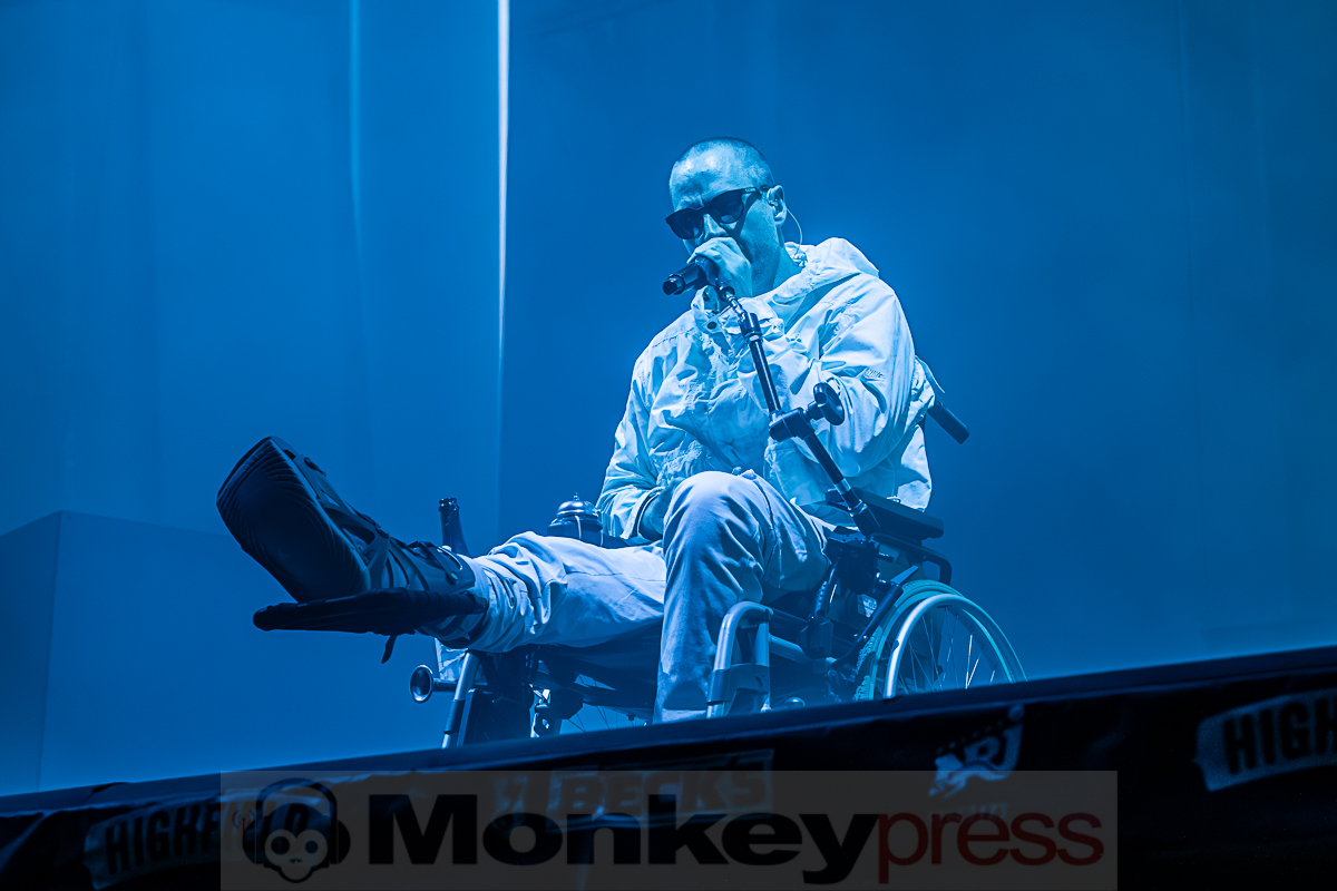Die Green Stage hatte aber auch noch einen Headliner parat. K.I.Z standen bereit. Der Bühnenaufbau sah aus wie riesige Kristalle. Rapper Maxim kam im Rollstuhl nach vorn – er hatte sich das Bein gebrochen und absolvierte seinen Part nun eben im Sitzen – „der erste deutsche Rapper mit Holzbein“. Ein DJ gab im Hintergrund den Ton an und Tarek und Nico liefen auf der Stage hin und her, während sie „Frieden“ zum Besten gaben. Dabei hielten sie die Hände gen Himmel und zeigten das Peace-Zeichen mit den Fingern. Die Lichtshow war auch hier ein Knaller. Immer wieder standen die einzelnen Herren in einem Lichtkegel und wurden so gut in Szene gesetzt. Sie trugen allesamt weiße Klamotten, so dass das Licht noch besser wirkte. Im Hintergrund wurden die Kristalle beleuchtet. Die Massen vor der Bühne waren voll bei der Sache – es wurde gesprungen, die Arme wippten im Takt und selbstverständlich wurden die Texte mitgegrölt. Zu „VIP in der Psychiatrie“, „Ehrenlos“ oder auch „Urlaub fürs Gehirn“ war es so laut, dass die Boxen trotz der fetten Beats diesen riesigen Chor kaum übertönen konnten.