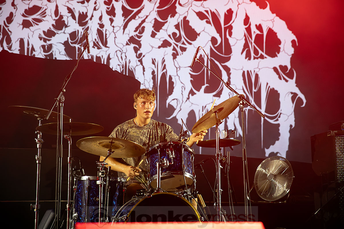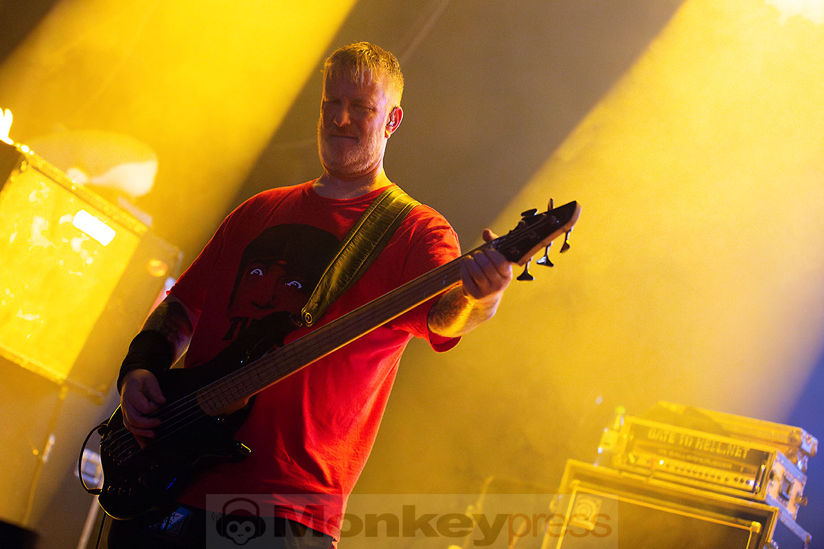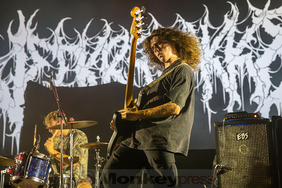 Fürsorglich schüttete Joe eine Ladung Wasser in die überhitzte Menge, bevor „Silvera“ losbrach – ein Song wie ein Vorschlaghammer, der mit rasiermesserscharfen Riffs und erbarmungslosen Grooves direkt ins Mark fuhr. Über der brodelnden Menschenmasse trugen unzählige Hände Crowdsurfer wie Wellenkämme empor, während Faust um Faust in die Höhe schoss. In solchen Momenten wirkt Gojiras Sound wie eine Urgewalt, die den Raum nicht nur erfüllt, sondern ihn vollständig in Besitz nimmt. Wie kann eine Band nur so unendlich fett klingen?!