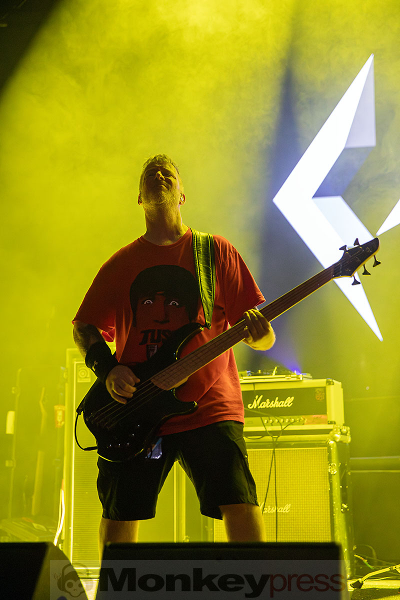 Bereits 30 Minuten vor dem angekündigten Konzertbeginn eröffneten Car Bomb den hitzigen Abend – und machten sofort klar, dass hier keine Kompromisse zu erwarten waren. Die Band aus Long Island, New York, gilt als eine der radikalsten Vertreter des experimentellen Metal- und Mathcore-Genres. Technisch komplex, rhythmisch unberechenbar, oft dissonant und ohne Rücksicht auf Eingängigkeit – wer Melodien sucht, muss hier genau hinhören. Bereits 2009 tourten sie schonmal gemeinsam mit Gojira – ein frühes Bindeglied in ihrer Live-Historie.