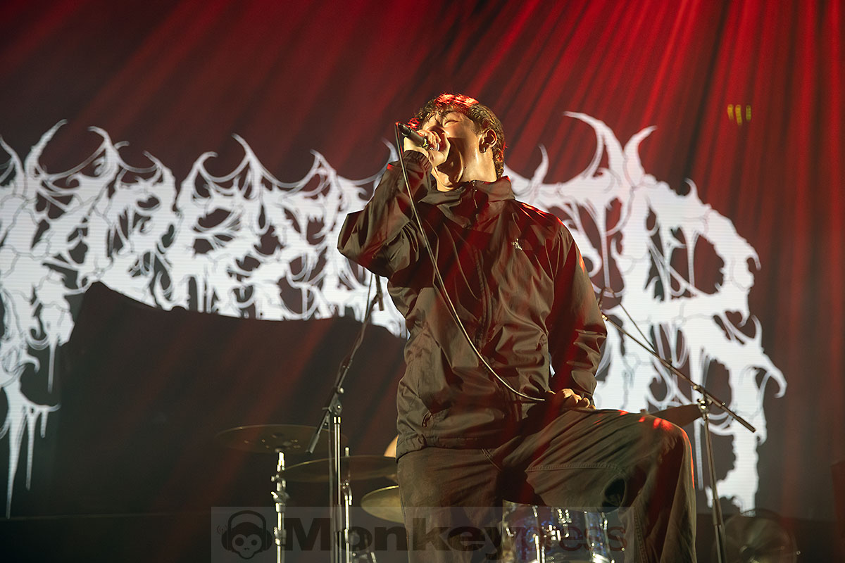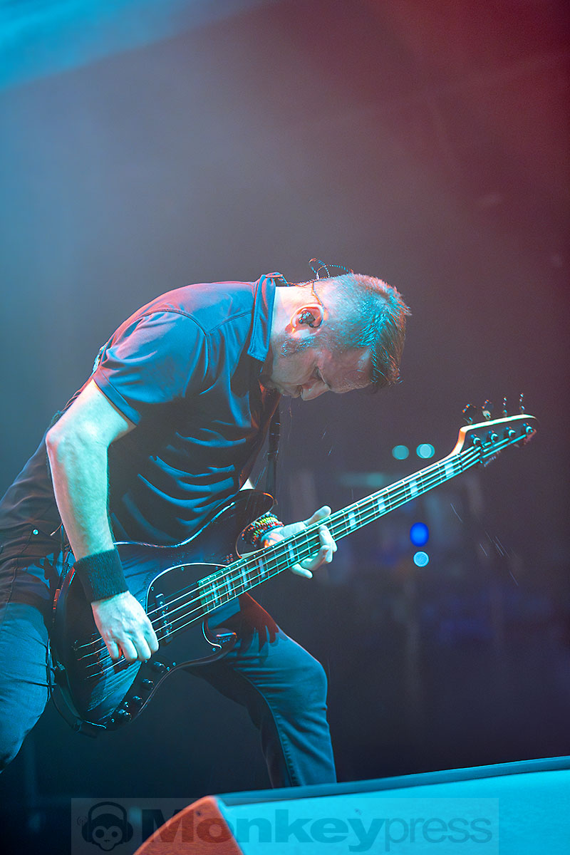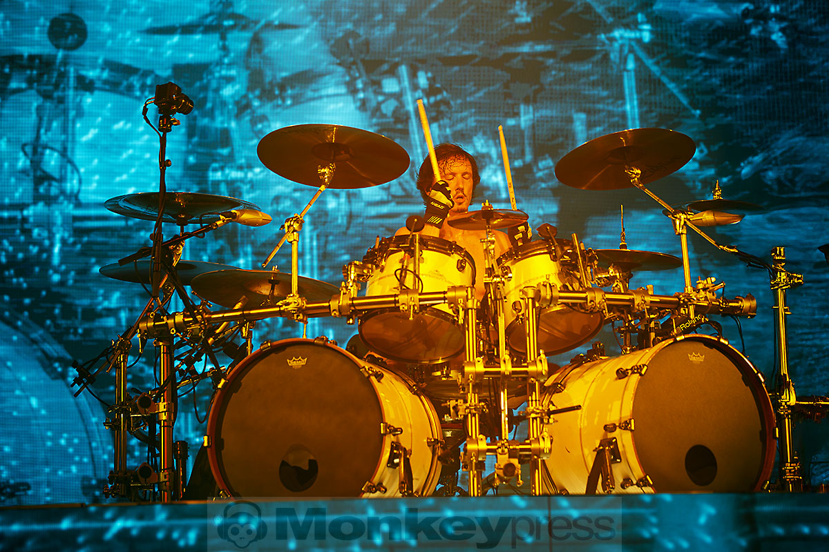 Mit „Only Pain“ preschten sie nach vorne und entluden die aufgestaute Spannung. Über die komplette Bühne schossen gewaltige Nebelsäulen empor, während Joe Duplantier einen Schwall Wasser ausspie und er voller Wucht seine Lyrics darbot. Mario, mit nacktem Oberkörper und kurzer Sporthose, bearbeitete sein monströses Drumset mit chirurgischer Präzision – eine pure Machtdemonstration gleich zu Beginn.