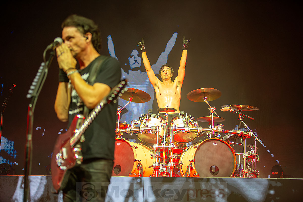 Mit „Amazonia“ verließen Gojira für einen Moment ihre gewohnte metallische Urgewalt und öffneten eine neue Klangwelt. Getragen von archaischen Rhythmen und tiefem Didgeridoo-Brummen wirkte der Song fast schamanisch, als hätte er etwas Uraltes, Erdverbundenes an sich. Die Gitarren schichteten sich zu einem hypnotischen Mantra, während Mario die Tribal-Grooves energetisch nach vorn trieb. Die Menge ließ sich sofort davon anstecken: Überall wogen Arme synchron nach links und rechts. Ein Moment, der zugleich erdig und hypnotisch wirkte – ein musikalisches Ritual, das zum Statement für den Regenwald und gegen seine Zerstörung wurde.