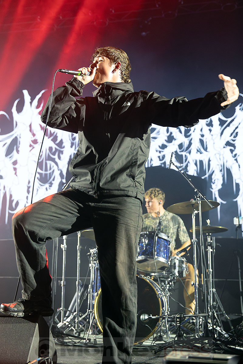 Doch Christoffer wollte mehr. „Circle pit! Ciiircle pit!“ brüllte er ins Mikro – und die Crowd gehorchte, als hätte jemand einen Schalter umgelegt. Wenige Minuten später forderte er: „Oberhausen, jump! Everybody get the fuck up!“ Die Reaktion? Ein kollektives Ausrasten, das die Halle zum Kochen brachte. Neckbreakker gaben an diesem Abend schlicht alles – und die flirrende Hitze, die längst wie eine Wand im Raum stand, schien für die Dänen nicht zu existieren. Mit ungebremster Spielfreude und einem Sound, der direkt in die Magengrube fuhr, rissen sie alles und jeden mit.