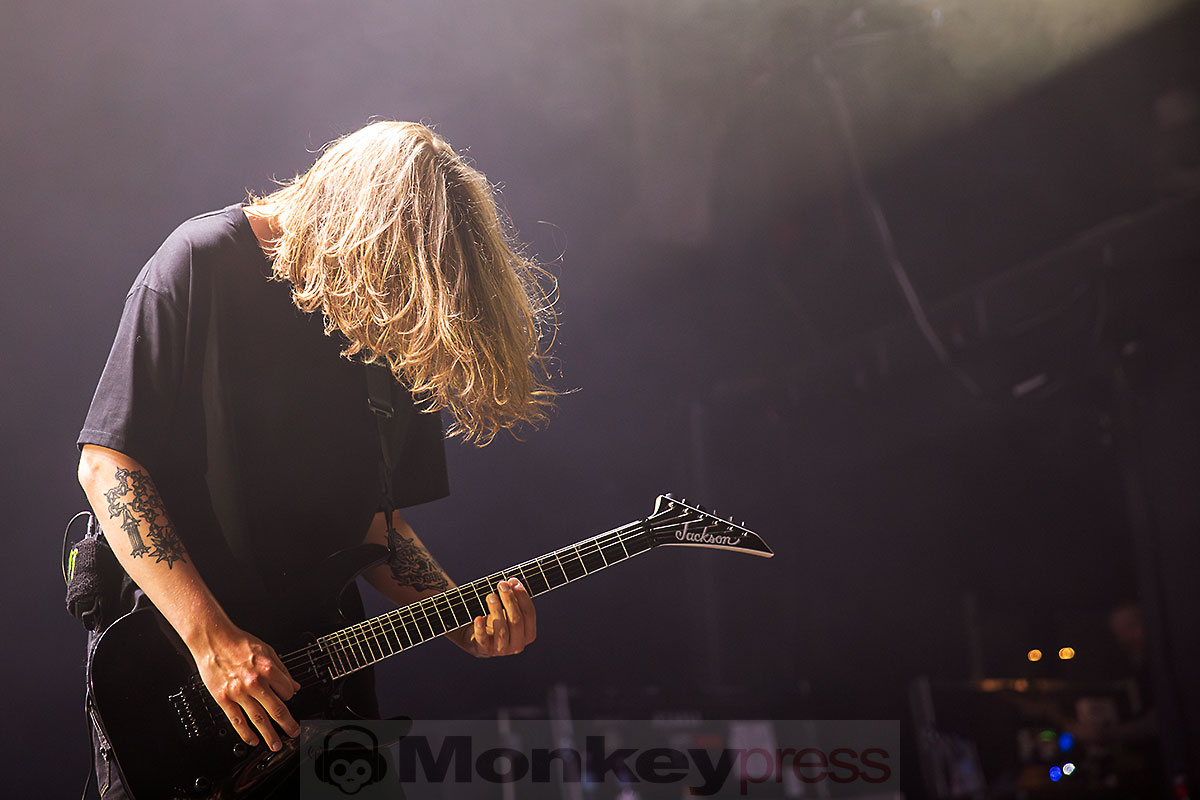 Auch die Band selbst verharrte überwiegend auf ihren Positionen, was der Intensität des Sounds jedoch keinen Abbruch tat. Beim Closer „Dissect Yourself“ gelang es dann doch, Köpfe im Takt wippen zu sehen – allen voran ein Heavy-Headbanger, der den Auftritt der US-Amerikaner besonders feierte. Nach rund 30 Minuten war der erste Schlagabtausch des Abends beendet – und die Turbinenhalle hatte einen Vorgeschmack auf die komplexe Gewalt von Car Bomb bekommen.