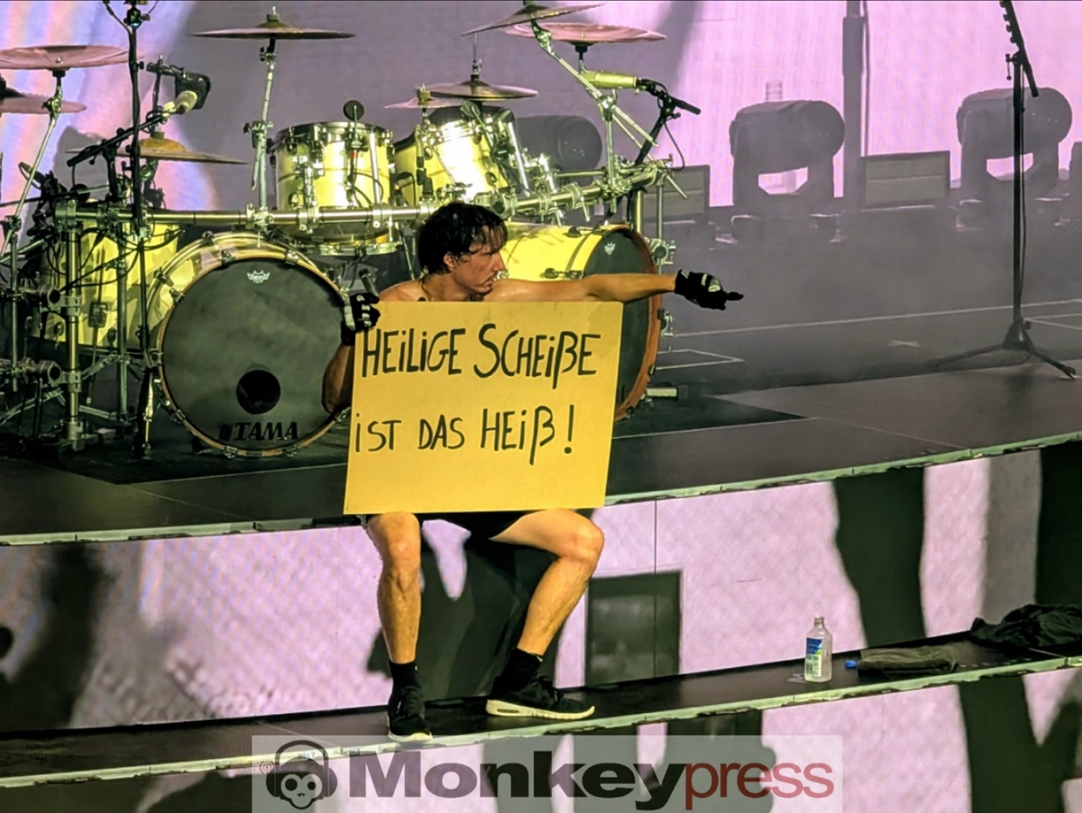 Und hier – mitten in der flirrenden Hitze der Turbinenhalle, entfaltete der Song eine völlig andere Wucht. Wo er in Paris als monumentaler Akt der Kulturgeschichte inszeniert war, brach er in Oberhausen wie ein Sturm los: roh, ungefiltert, unmittelbar. Die Menge griff die historischen Gesänge auf und verwandelte sie in eine raue, mitreißende Energie, die durch jeden Winkel des Raumes jagte.