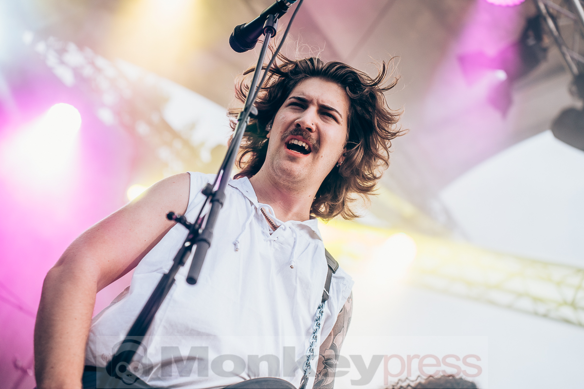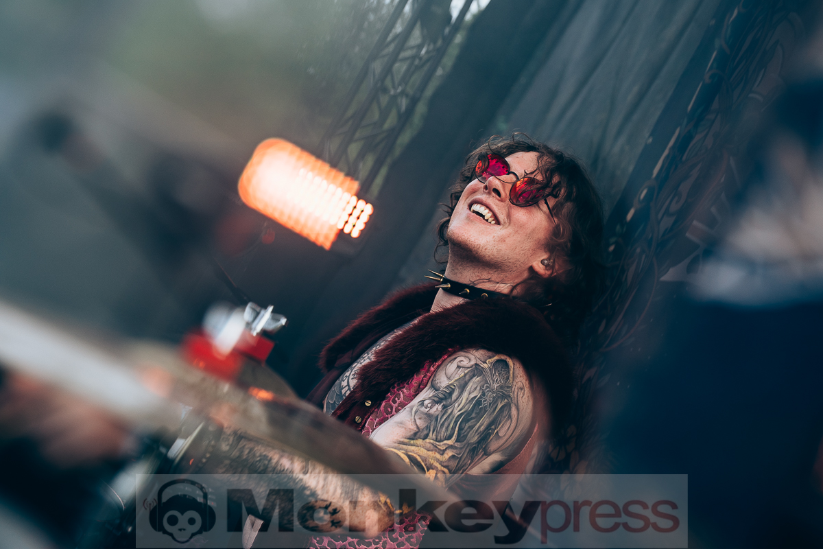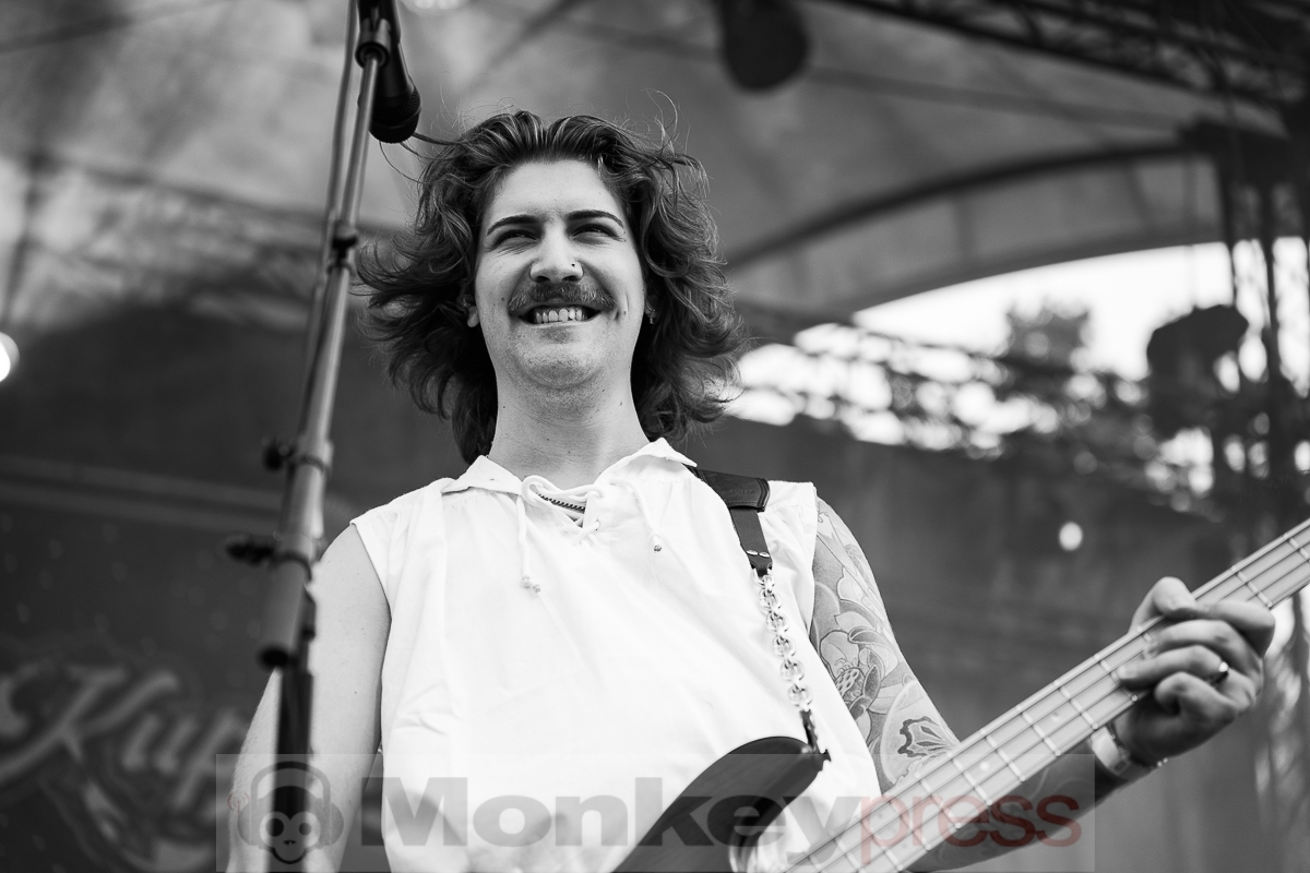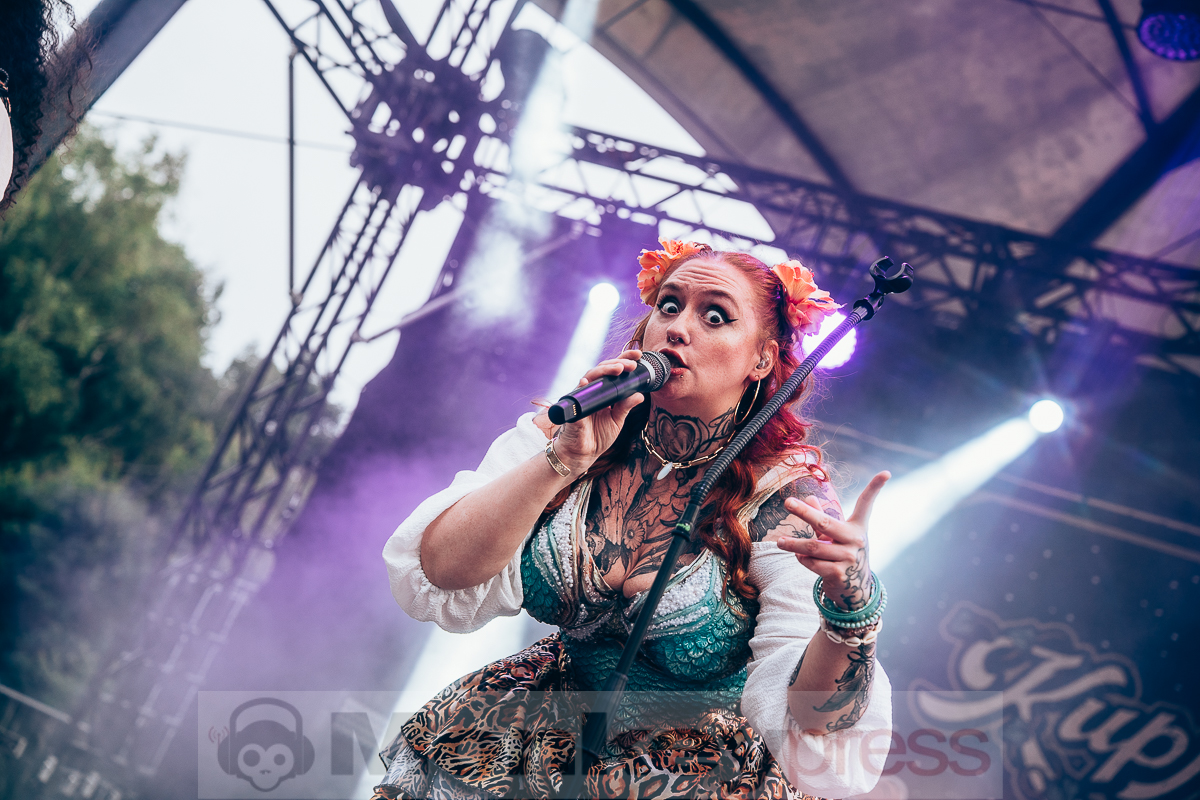 Kurz nach 14:00 Uhr trifft die Band gut gelaunt auf dem Festivalgelände ein. Nach einer kurzen Verschnaufpause geht es an die Vorbereitungen für das anstehende Meet and Greet mit den Fans und das Konzert am Abend. Während die wundervolle Bonnie Banks sich zurückzieht um in ihr Bühnenoutfit zu schlüpfen, laden die restlichesn Kupfis das Instrumenten-Gepäck aus und auch der Merch-Stand wird bestückt.