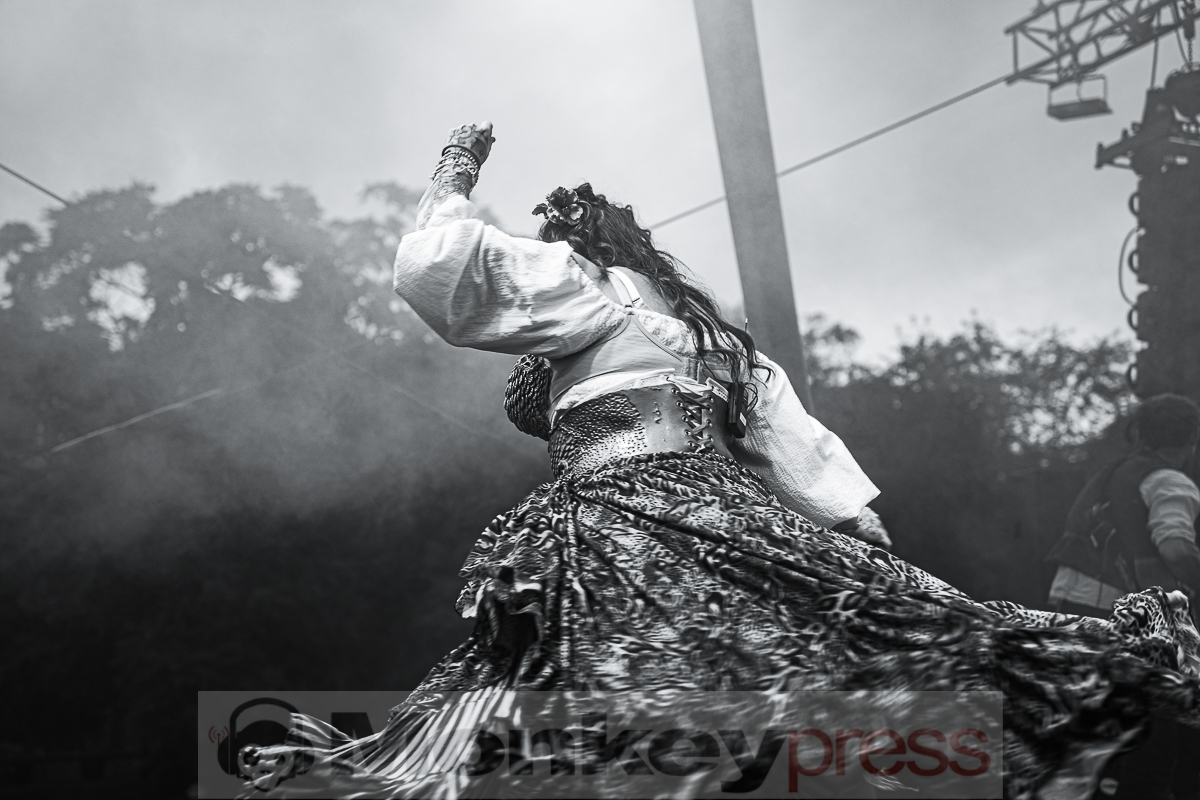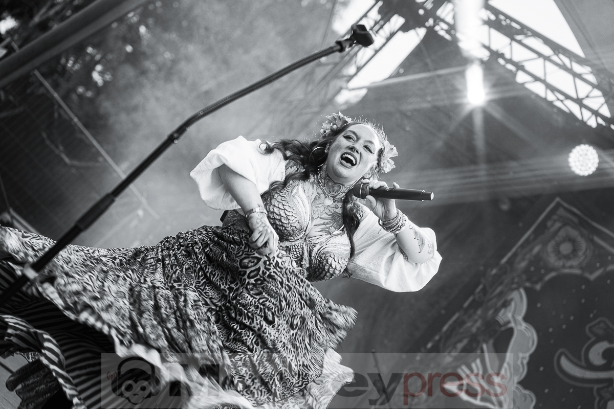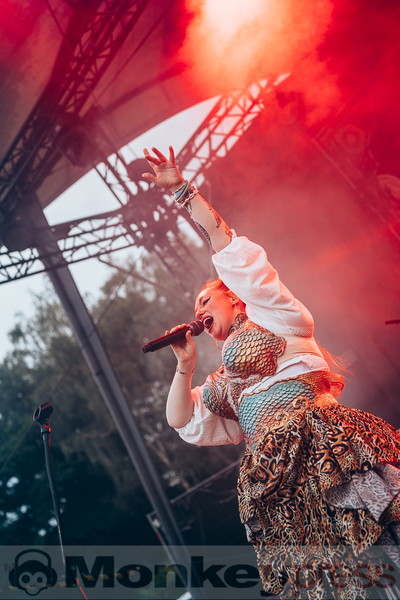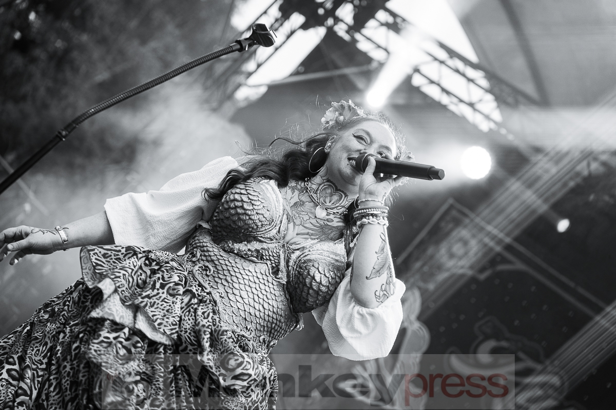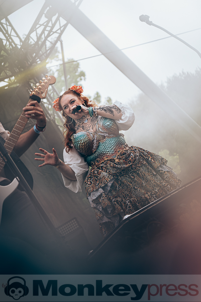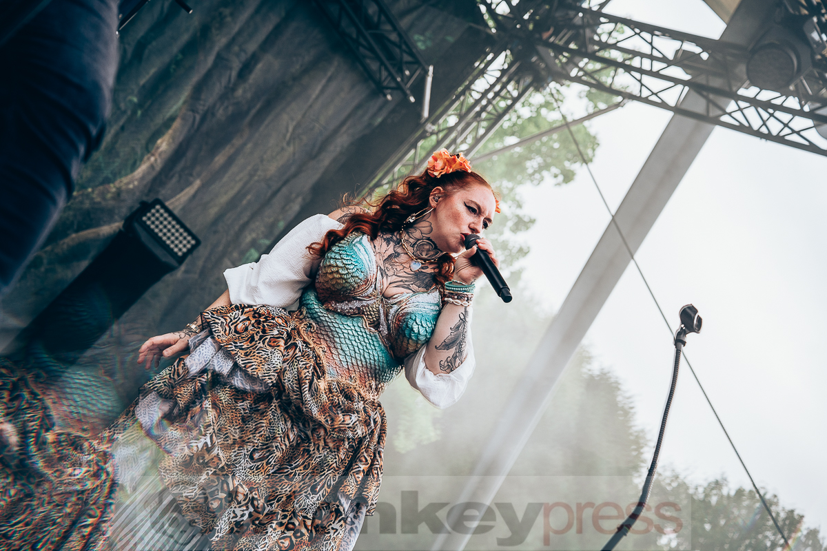 Mit „Der Metmeister“ bleibt die Band noch auf ihrem aktuellen Album, lädt die Fans danach mit „Zum Goldenen Rammler“ dann zu ihrem 2021er Album „Heiliger Bimbatz“ ein, um dann wieder zum aktuellen Album zurückzukehren: „Muschelbusen“ und „Der Klügere Kippt Nach“. Die Fans sind textsicher und singen die Songs ausgelassen im Chor mit. Mit „Lichtermeer“ und „Das Bienenhaus“ endet vorerst die musikalische Darbietung. Vorerst! Denn so einfach lässt das Publikum die Band nicht gehen. „Zugabe! Zugabe!“ schallt es der Band entgegen und die legt mit „Kupfer und Gold“, „Koboldkeile“ und „Es ist Obst im Haus“ nach.
