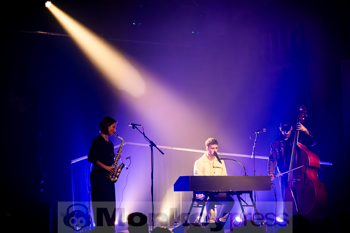 Dieses beginnt gegen 21 Uhr mit einem kleinen Intro, bevor Betterov gemeinsam mit Paul Blume am Kontrabass und Conni Nicklaus an Saxophon und Klarinette das reguläre Set mit „Alles nur ein Film“ eröffnet. Die intime Tour mit dem einen oder anderen Locationschätzchen – wie hier in Köln – bietet den Eröffnungsrahmen für das neue Album „Große Kunst“, das Anfang November erscheinen wird. Nach dem ersten Blick darauf mit „Du hast in mein Herz gemalt“, folgt mit „Nacht“ aber zunächst noch ein Track von Betterovs erster EP „Viertel vor Irgendwas“, die heute auch als Vinyl zum Verkauf steht.