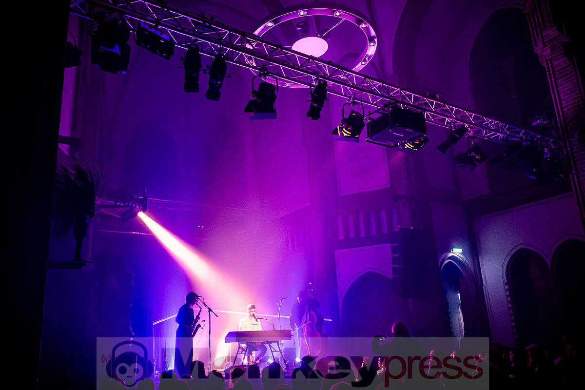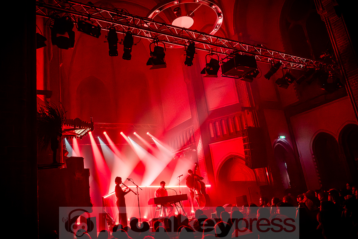 15. Oktober 2025 – Er wartet, bis es Nacht wird, dann betritt er … die Bühne, die de facto den Altarraum der leicht vernebelten Kulturkirche darstellt. Es ist 21 Uhr, doch schon frühzeitig hatte sich die Betterov-Gemeinde in diesem prächtigen Bau eingefunden, um so manches Klangerlebnis zu feiern. Punkt 20 Uhr weicht das muntere, tuschelnde Geraune das erste Mal der stillen Aufmerksamkeit, denn Paul Blume sorgt als Support für erste Klangbilder, gemalt mit MacBook, Keyboard und Bass. Und damit nichts davon ablenkt, ist die Bühne nur leicht von hinten beleuchtet – den Künstler selbst erkennt man nur schemenhaft. Das bleibt auch so, als er nach 20 Minuten ans Mikro tritt und die tranceartigen Sounds erstmals durch Gesang ergänzt werden, bevor es abrupt still wird und der Auftritt unter ordentlichem Applaus endet.