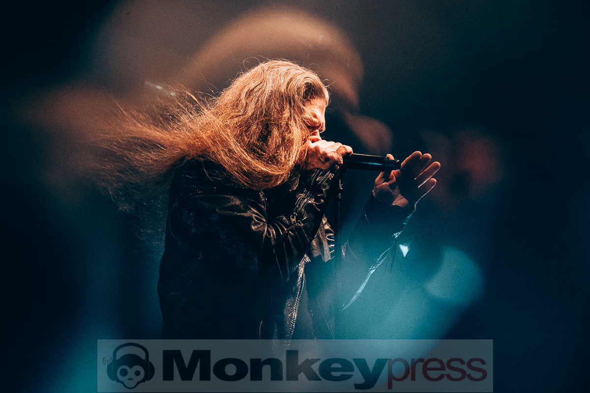 …damit sich das Dröhnen und Donnern von „Kein Allein“ langsam im Raum ausbreiten kann. Der Opener der neuen EP „Chapter 1: Dead End Dreams“, die Diary of Dreams bei dieser Tour im Gepäck haben, ist also auch Opener des Konzerts und schon jetzt herrscht eine Stimmung im Saal, die einfach unfassbar ist. Es ist faszinierend, wie die Musik von Adrian Hates und seinen Kollegen auf der Bühne das Publikum mitreißt. Schon nach einem Song ist man ganz tief im Tagebuch der Träume versunken. Man vergisst Zeit und Raum, ist eingehüllt in diese einzigartigen Melodien und in diese einzigartig schönen Lyrics. Und ehe man sich versieht, hängt man bereits im nächsten Kracher fest: „The Chemistry Of Pain“, ebenfalls ein neuer Song und auch die erste Singleauskopplung des neuen Minialbums – „Wrong. So wrong.“