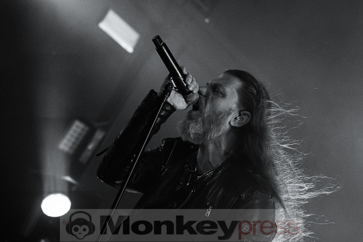 Nach einer kurzen Umbauphase auf der Bühne werden die Lichter im rappelvollen Ballsaal des Täubchenthals gedimmt und eine künstliche Stimme erklingt: „Ich bin nicht echt, ich habe keine Gefühle – du aber schon! Du kannst sehen, du kannst hören, du kannst fühlen. Wir möchten dir nichts verbieten, aber nimm die Gegenwart bewusst wahr ohne auf dein Handy zu starren! Fühle! Höre! Sieh!“ Eine Erinnerung, die sitzt. Wie oft vergessen wir im Moment zu leben und die Gegenwart zu genießen. Und wie auch die Songs von Diary of Dreams immer tief gehen, zum Nachdenken und Fühlen anregen und oft auch Salz in Wunden streuen, so tut es jetzt eben auch diese KI-Stimme, die letztendlich verstummt…