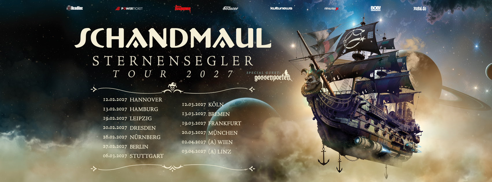 Schandmaul setzen Kurs auf eine neue Live-Ära: Mit der „Sternensegler“-Tour 27 kehrt die Münchner Folk-Rock-Formation Anfang 2027 auf die großen Bühnen zurück – und verbindet damit den kommenden Longplayer „Sternensegler“, der für Mitte 2026 angekündigt ist, mit einem ganzen Bündel frischer Konzertdaten. Am 02.12.2025 wurde die Tour offiziell angekündigt, der Vorverkauf startet gestaffelt in diesen Tagen.